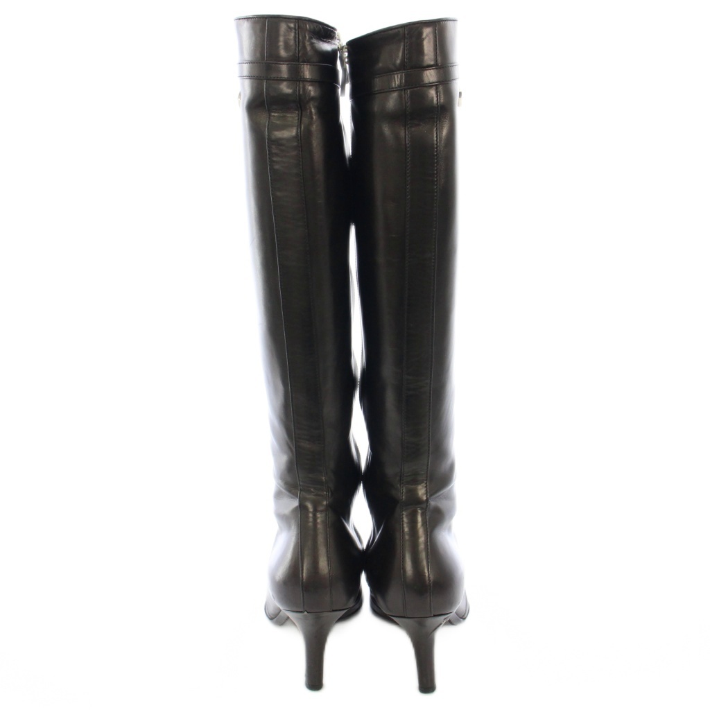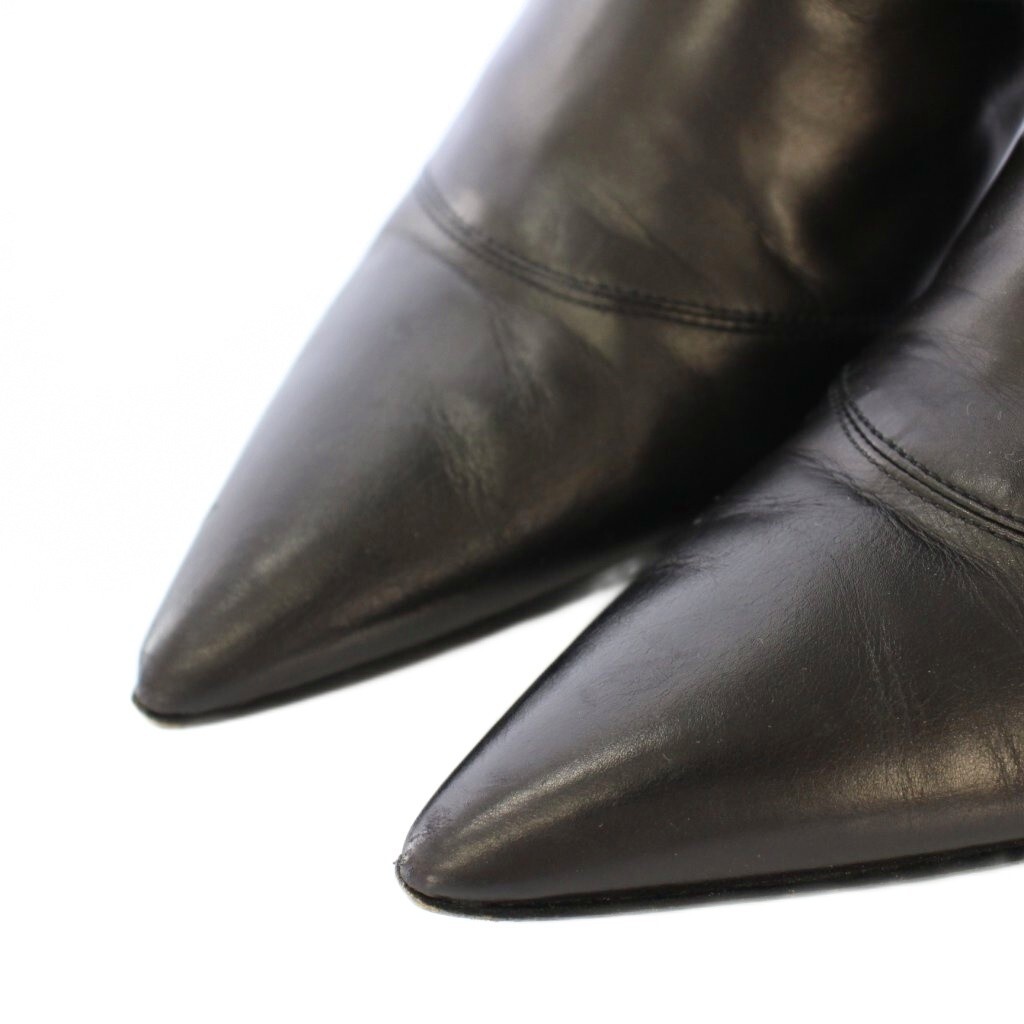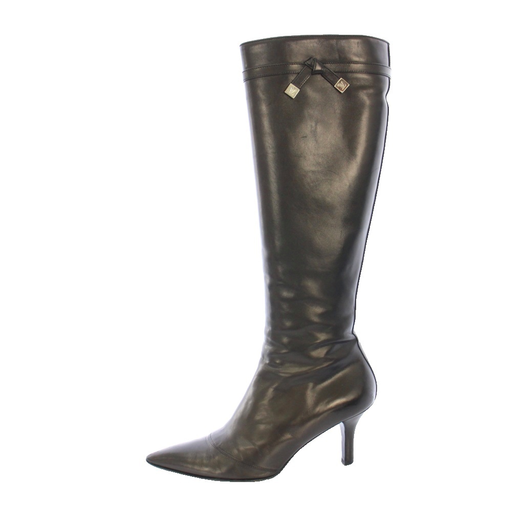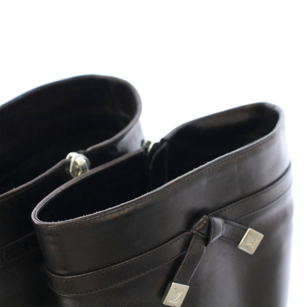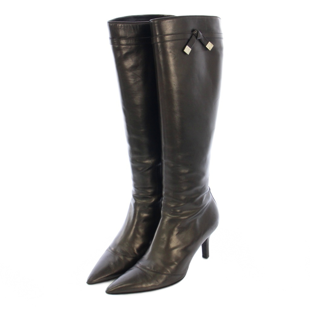 ルイヴィトン LOUIS VUITTON ロングブーツ ポインテッドトゥ ローヒール レザー リボン 35.5 ダークブラウン /BB レディース