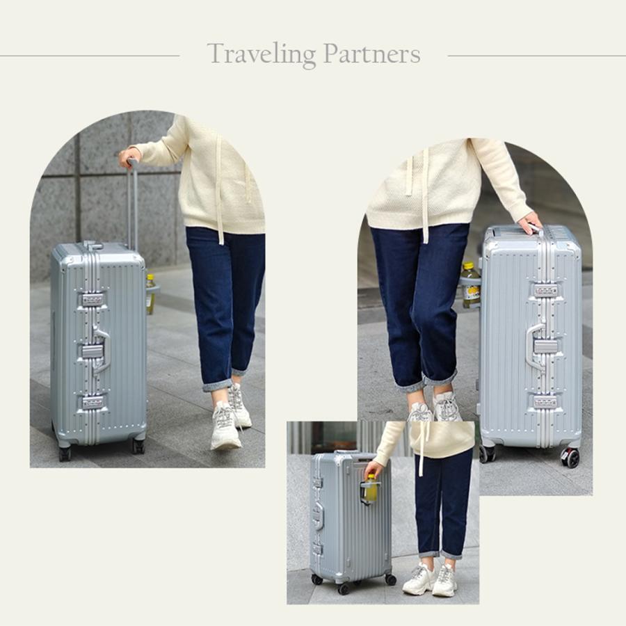 スーツケース 大容量 キャリーケース アルミフレーム おしゃれ 大型 ラベル 泊まる TSAロック ダブルキャスター 5色可選 Mサイズ 24インチ
