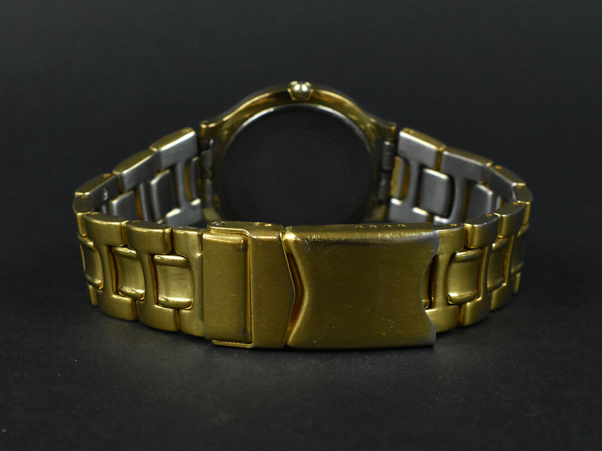 SS・GPにスレ・クスミ、針にクスミ、GPにメッキ剥がれ、バックル内側に黒ズミがございます。 稼働しておりますが、24時間回しての日付変更が正常に行えず、表示にズレが生じます。 こちらは訳あり品のため、万が一商品に問題があった場合でも、返品・返金は致しかねますので、ご理解の上ご入札をお願い致します。 |