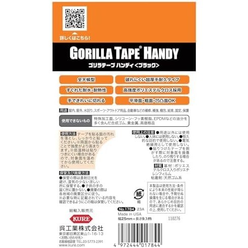 サイズ: 25mm×9.1m_ブラック KURE(呉工業) ゴリラテープ ハンディブラック 25mm×9.1m 強力補修テープ 1784