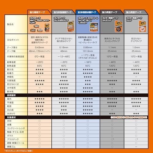 【用途】屋内、屋外、水回り、スポーツ・アウトドア用品、自動車などの補修、補強、梱包、結束、固定、保護