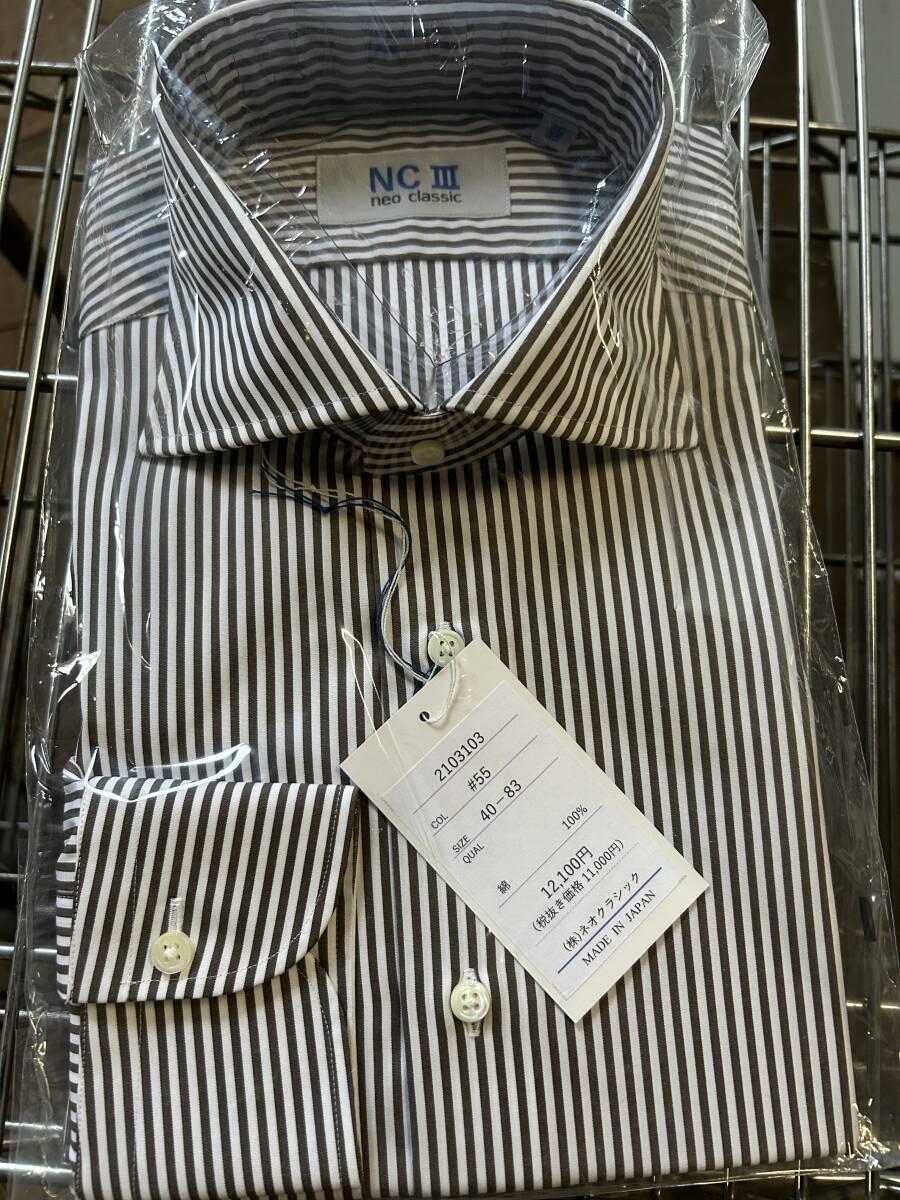 Q) 新品 ブラウンストライプ 長袖 ワイシャツ ドレスシャツ 40-83 ブラウン系 日本製 綿100% M 12,100円 | |