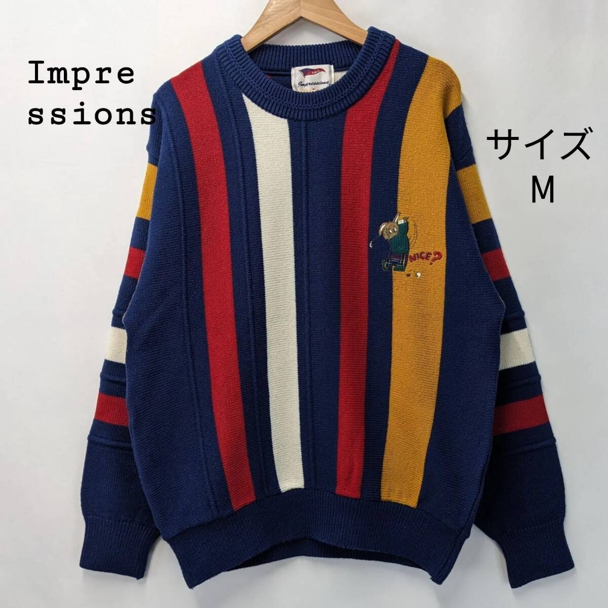 Impressions インプレッションズ メンズ ニット セーター ゴルフウェア ウール混 ブルーx白x赤x黄色 サイズM