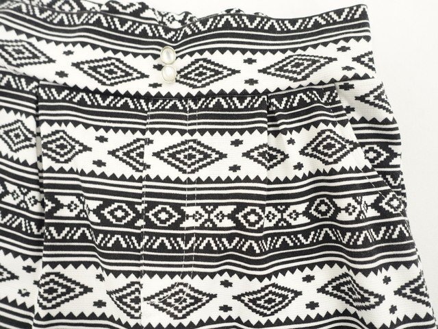 ツータックワイドパンツ 120 ホワイト×ブラック 総柄 【メール便可】