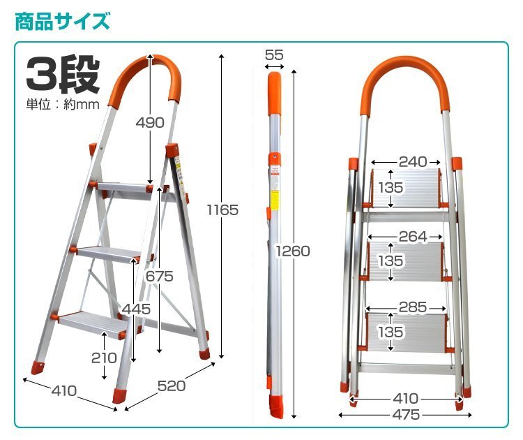 | ★仕様 サイズ(約):幅410mm×奥行520mm×高さ1165mm 収納時サイズ(約):幅55mm×奥行410mm×高さ1260mm カラー:オレンジ 材質:アルミ 重量(約):3kg 耐荷重(約):130kg ★注意事項 ※海外製品で、簡易梱包での輸入のため風防に擦れや多少の小キズなどがある場合がございますが、商品自体には問題ありませんのでご了承下さい。 ※商品は、モニターによって色合いが異なって見える場合があります。 ※仕様・デザインは改良のため予告なく変更することがあります。 ※折りたたむとき、指などを挟まないようにご注意下さい。 ※仕様・デザインは改良のため予告なく変更することがあります。 【もちろん新品未使用品です】 ▼検索キーワード 脚立 3段 アルミ 踏み台 折りたたみ おしゃれ 軽量 折りたたみ脚立 ステップ台 ステップラダー はしご 梯子 ハシゴ アルミはしご ステップ 大掃除 掃除 そうじ ガーデニング 洗車 洗車台 日曜大工 避難 人気 おすすめ |