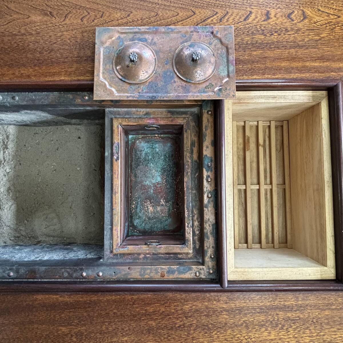 【 囲炉裏テーブル 】 昭和レトロ 古民家 家具 木製 関西 長火鉢 大和火鉢 座卓 炉端 ろばた 食卓 引き出し 民芸 兵庫県加古川市 直接取引