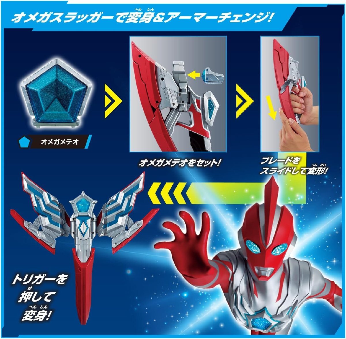 ・トリガーを押すと変身メロディが発動し、ウルトラマンオメガに変身!