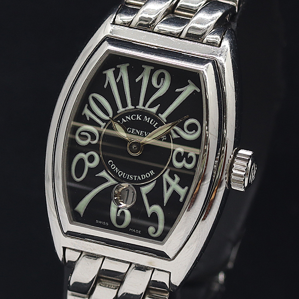 1円 箱付 稼働 良品 フランクミュラー コンキスタドール ブラック文字盤 AT/自動巻 レディース腕時計 0080410 9ERT KTU