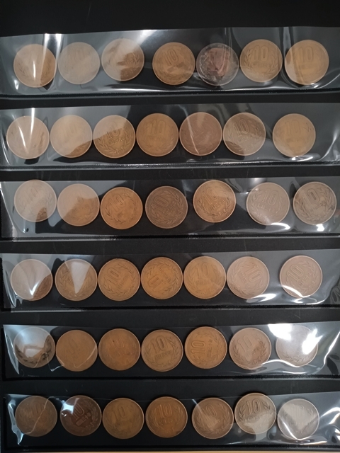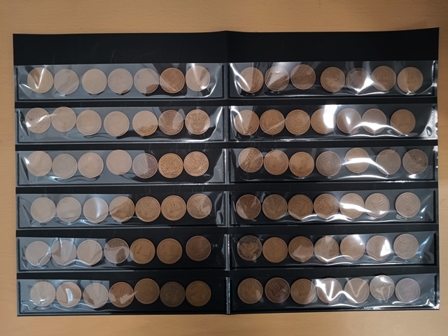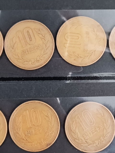 | (送料無料)ギザ十 ギザ10 昭和29年60枚 昭和30年24枚 額面計:840円 | ||||