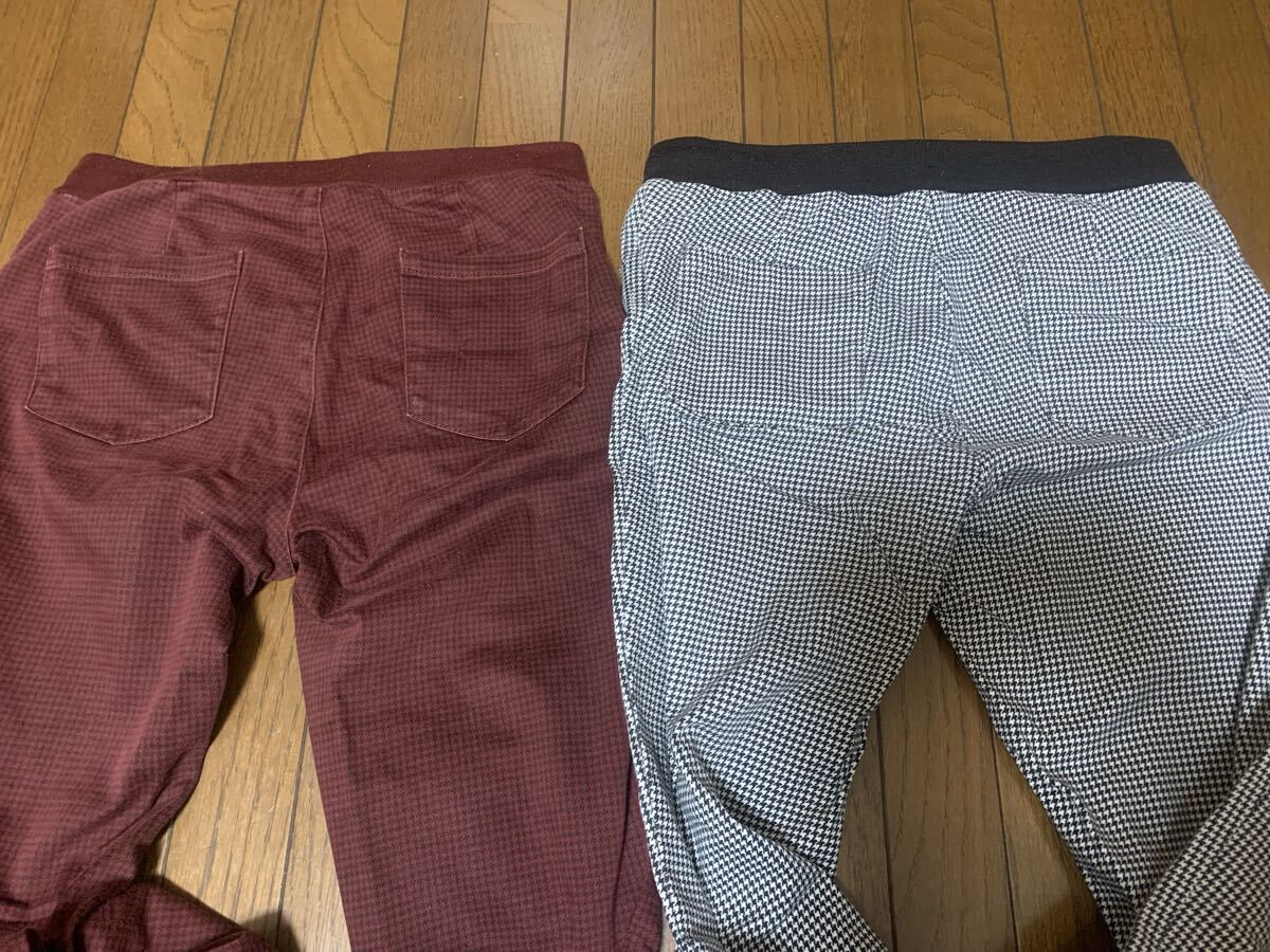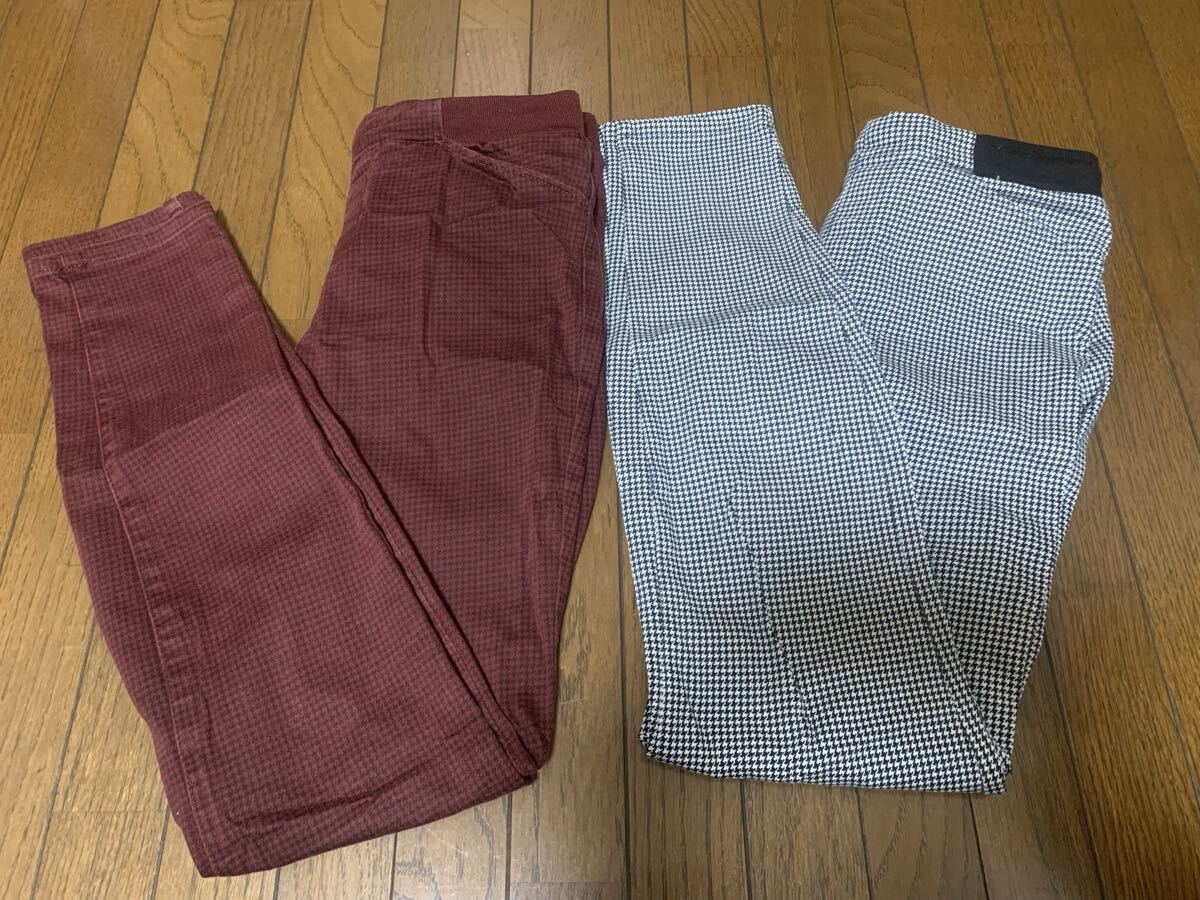 ユニクロのヒートテックレギンスパンツです。履きやすく動きやすいパンツです。サイズはMサイズで、白黒千鳥格子柄と赤系チェック柄の2着セットです。おまけとして、トップバリューの白黒キンガムチェック柄パンツ(Sサイズ)を同梱します。全てやや着用感のある中古品です。ご理解の上ご入札ください。自己紹介欄ご覧ください。