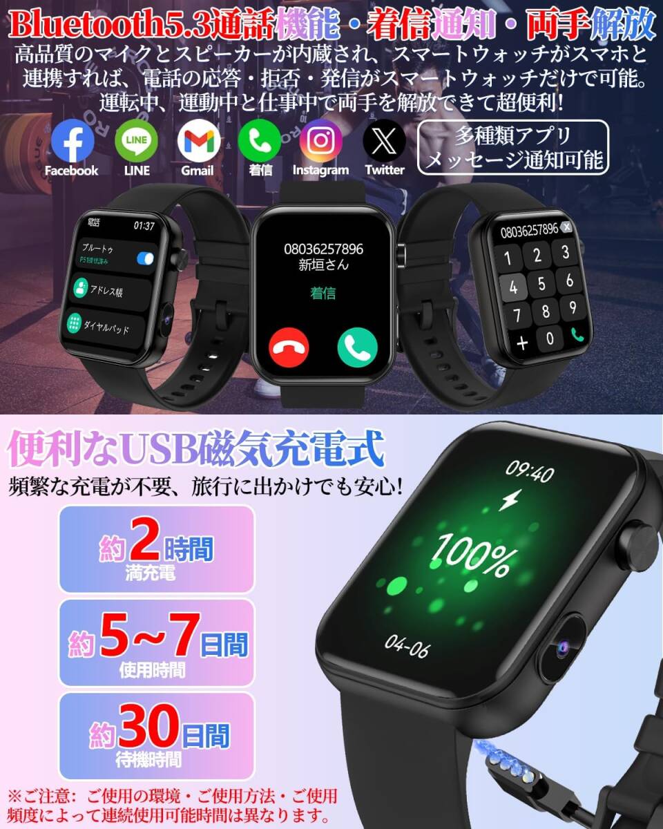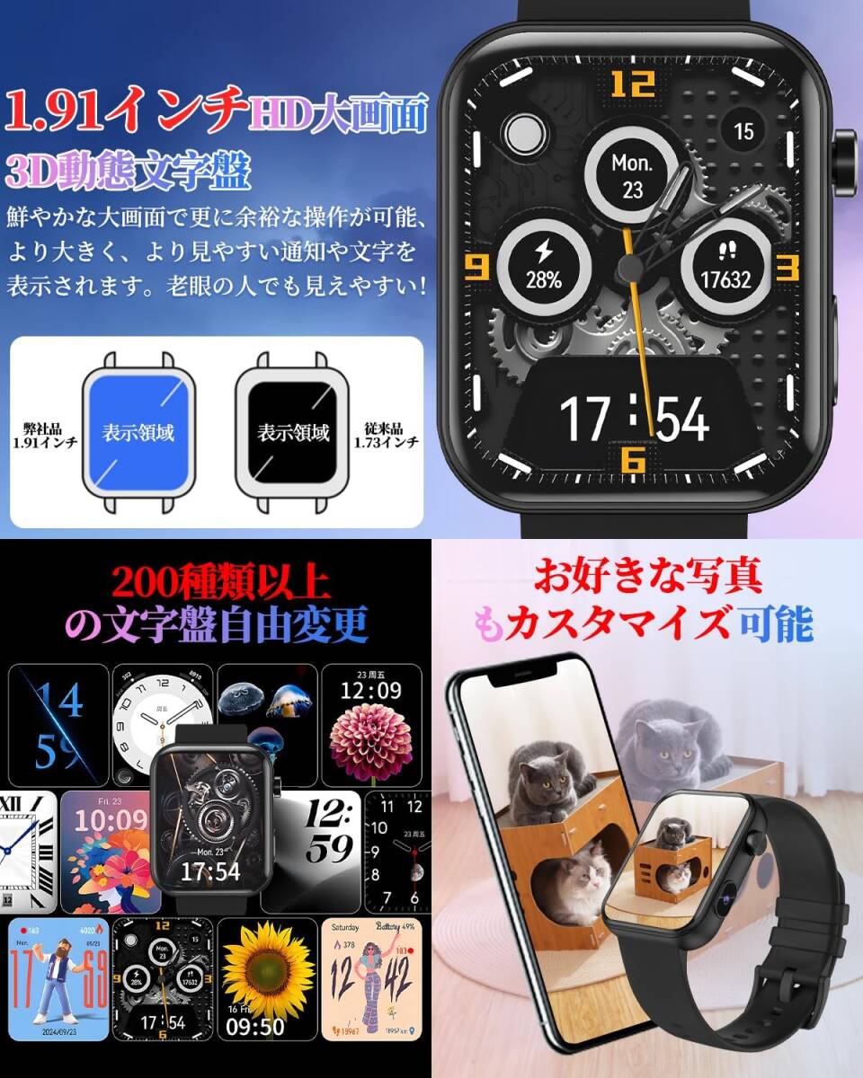 スマートウォッチ【2025年業界最新傑作 時計にカメラ内蔵 録画録音機能】1.91インチ大画面 スポーツウォッチ ローカル音楽再生