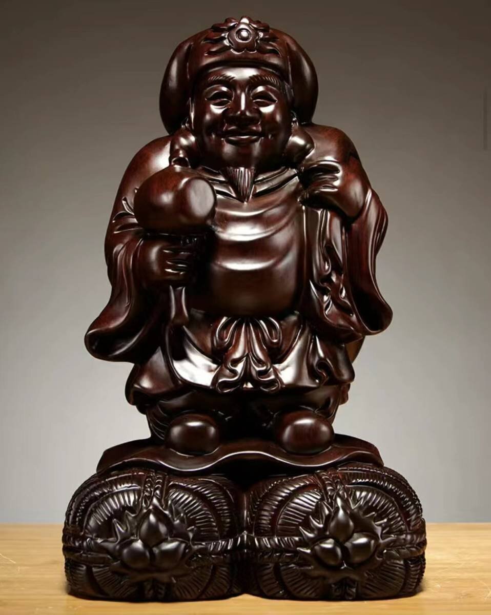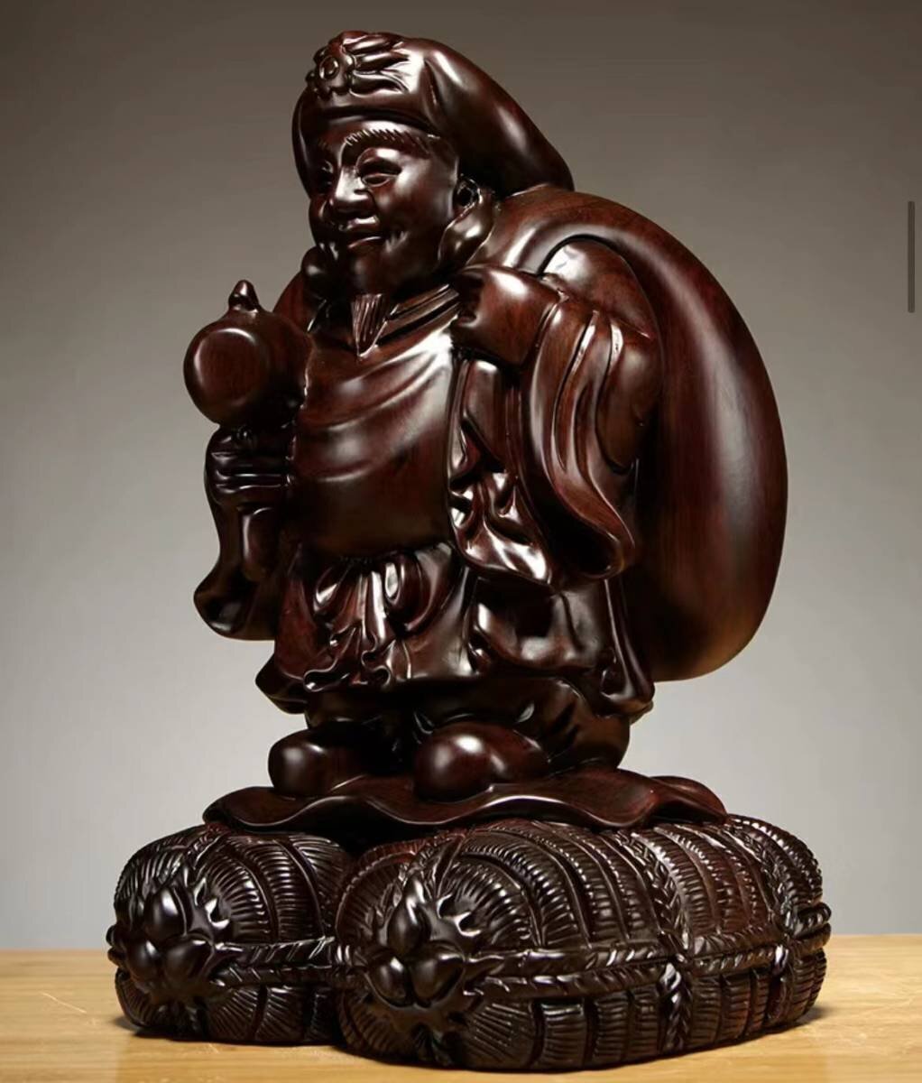 大黒天 縁起物 仏師で仕上げ品 黒檀木 彫刻工芸品 精密彫刻 置物 shw122