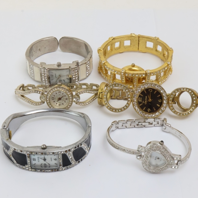2510-562 ST 海外系ブランド 6本セット クオーツ 腕時計 シェル文字盤 ビジュー装飾 バングルタイプ | |||||||