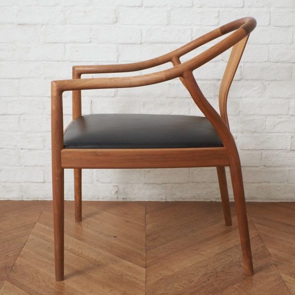 ウォールナット無垢材を使用し、アームから背もたれにかけ柔らかなラインが美しいアームチェア。デザインから座り心地まで細かなディテールにもこだわり、シンプルな中にも品格が感じられる一品です。