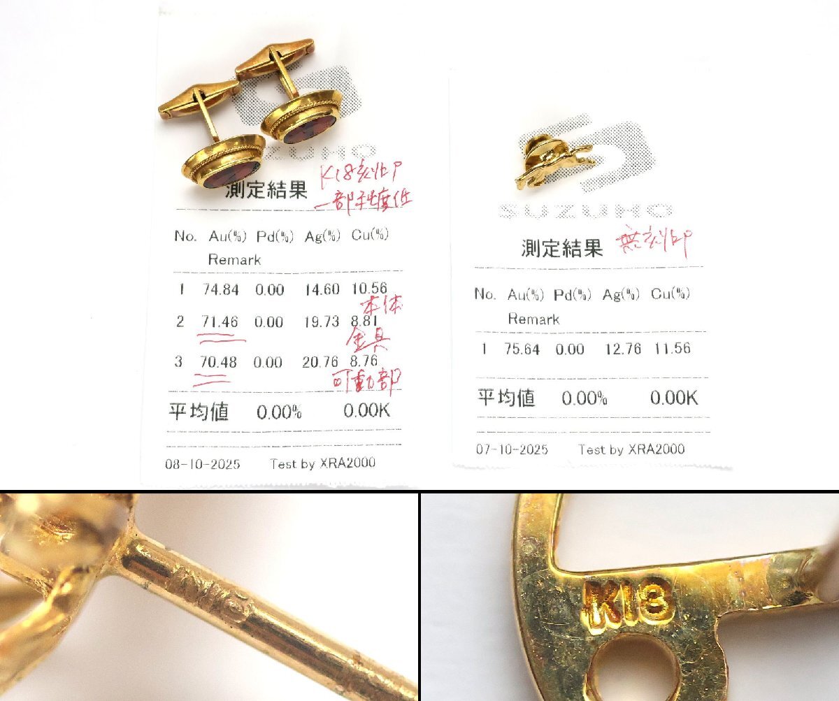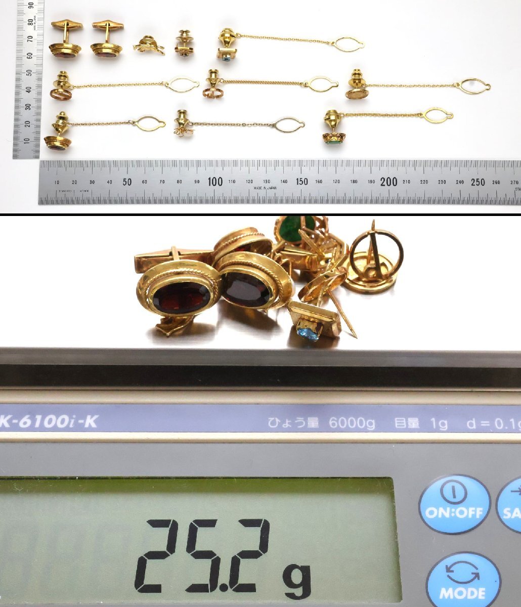おたからや◆K18刻印/K18相当メンスジュエリーおまとめ《約25.2g》石付カフス,地金タイピン等 ※X線結果ご参照下さい【B-YA02524】