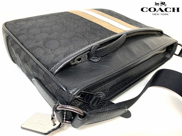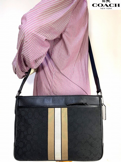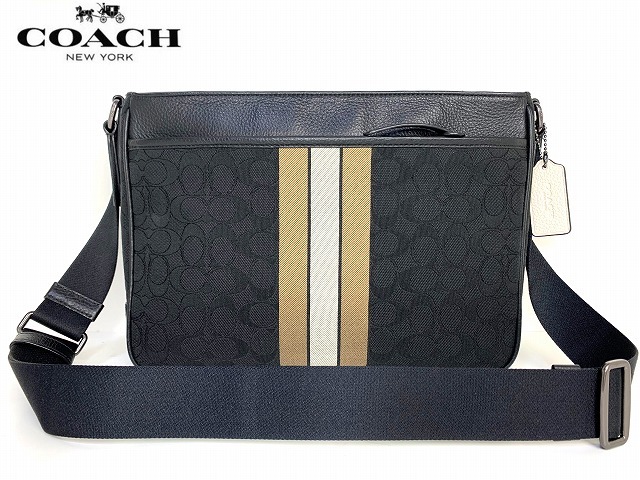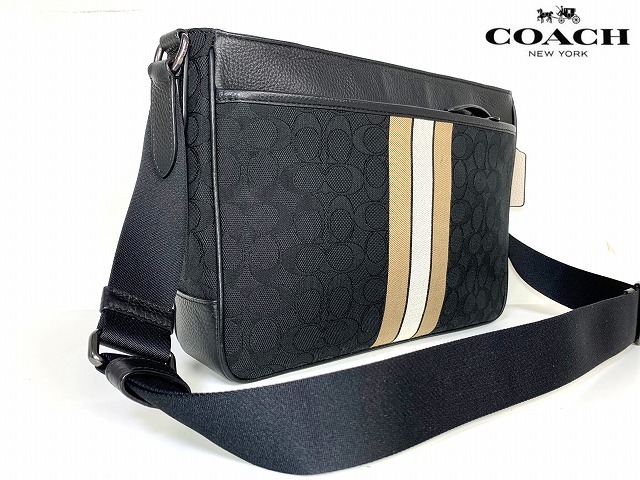 新品同様★送料無料★ コーチ メンズ COACH トンプソン シグネチャ ヴァーシティ ストライプ クロスボディー ショルダーバッグ