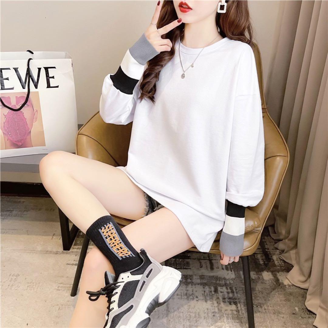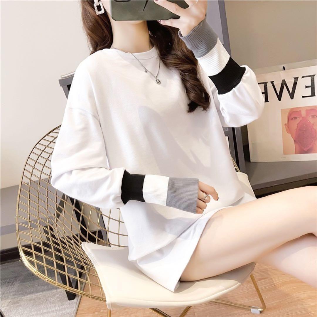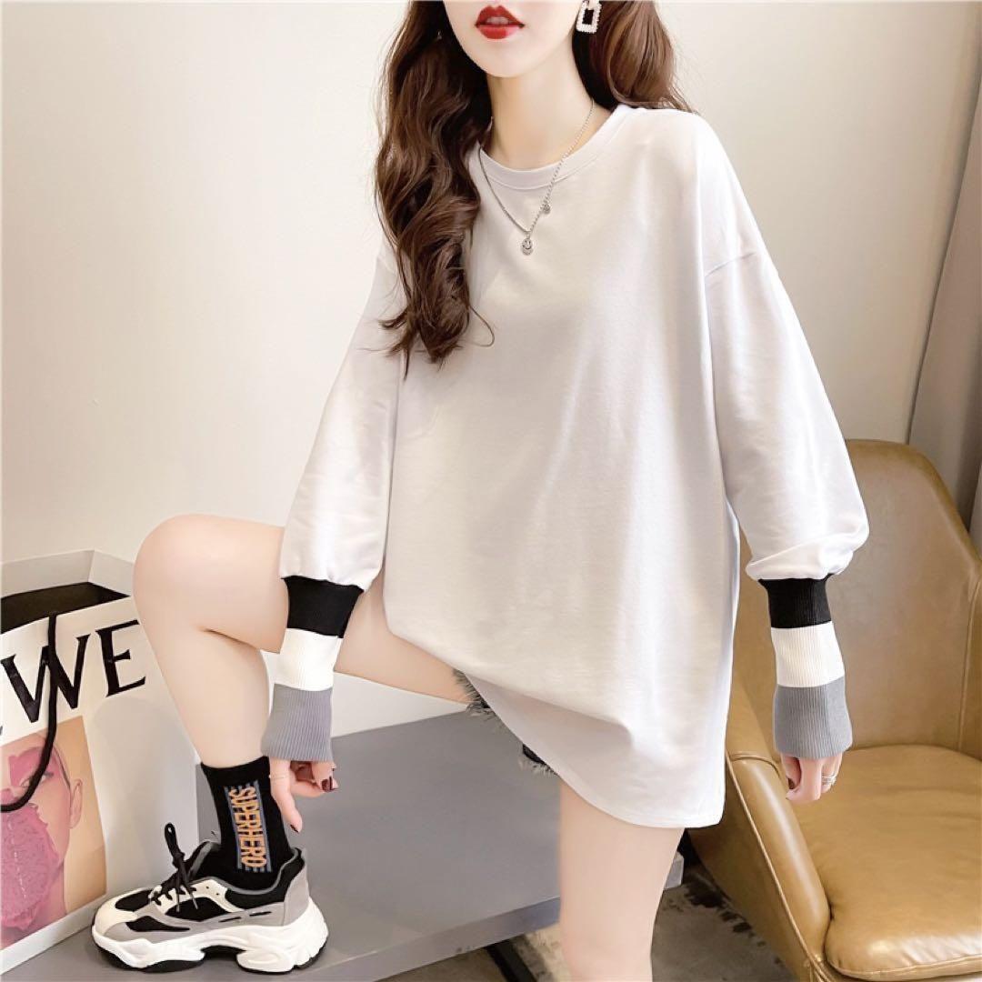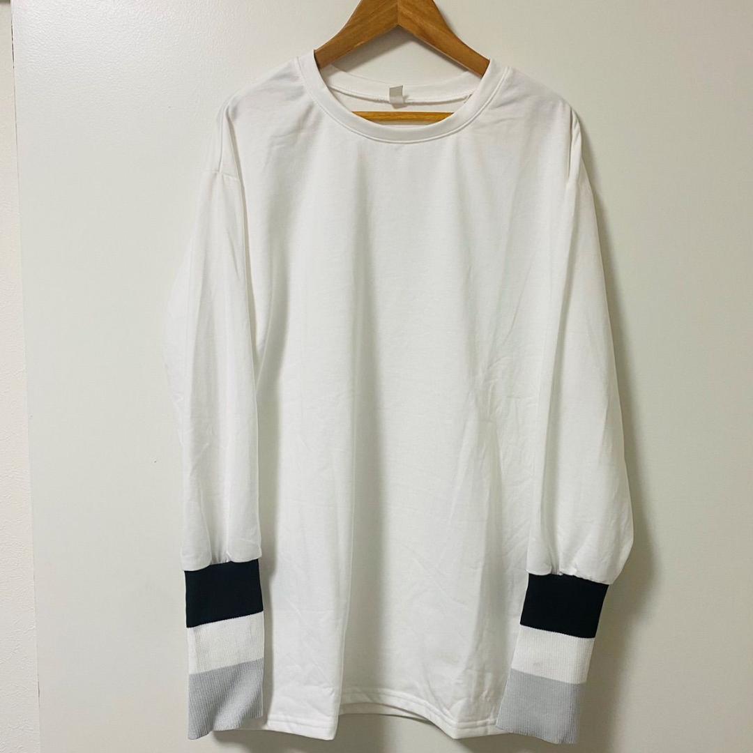 tシャツ レディース プルオーバー カットソー 配色 長袖 カジュアル 春 秋?オーバーサイズ?ロンT?ホワイト?XL?韓国?大人気?袖?リブ?ビッグシルエット