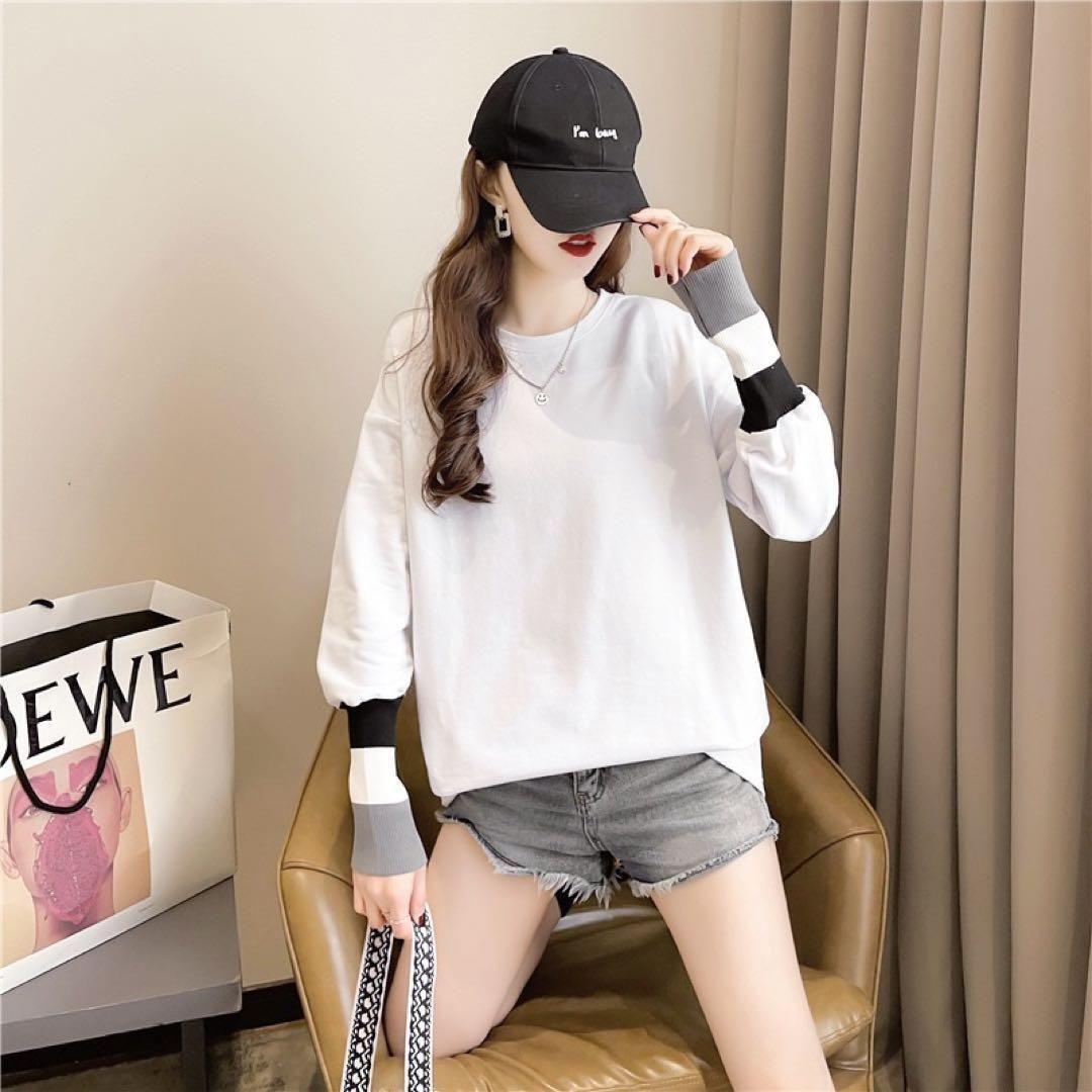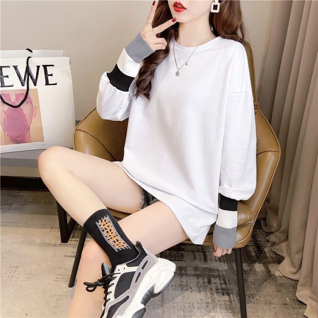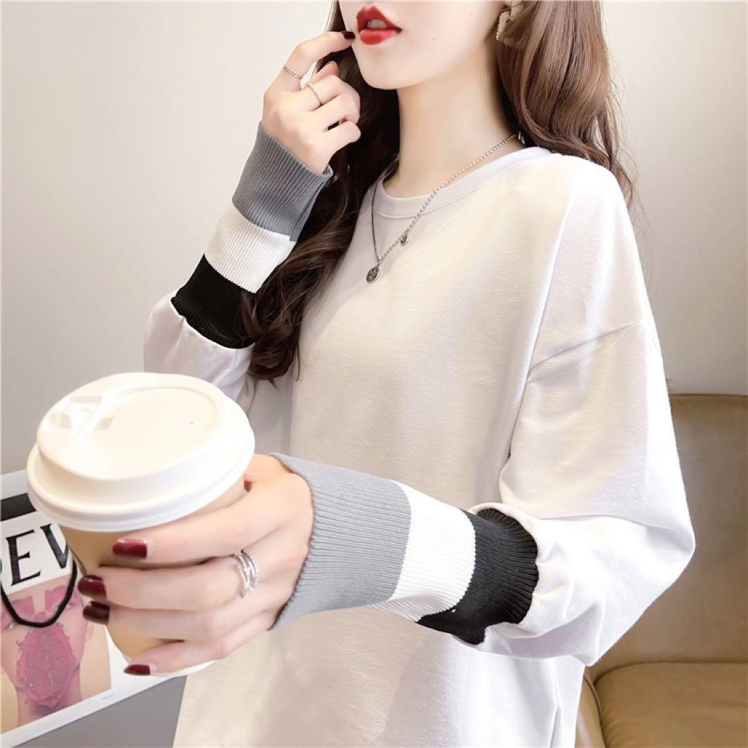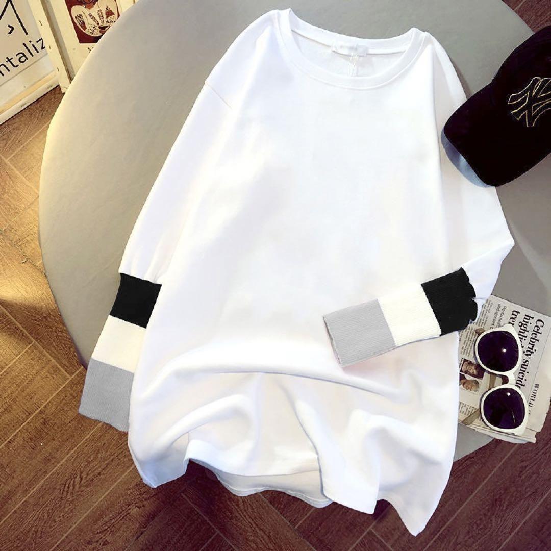 tシャツ レディース プルオーバー カットソー 配色 長袖 カジュアル 春 秋?オーバーサイズ?ロンT?ホワイト?XL?韓国?大人気?袖?リブ?ビッグシルエット