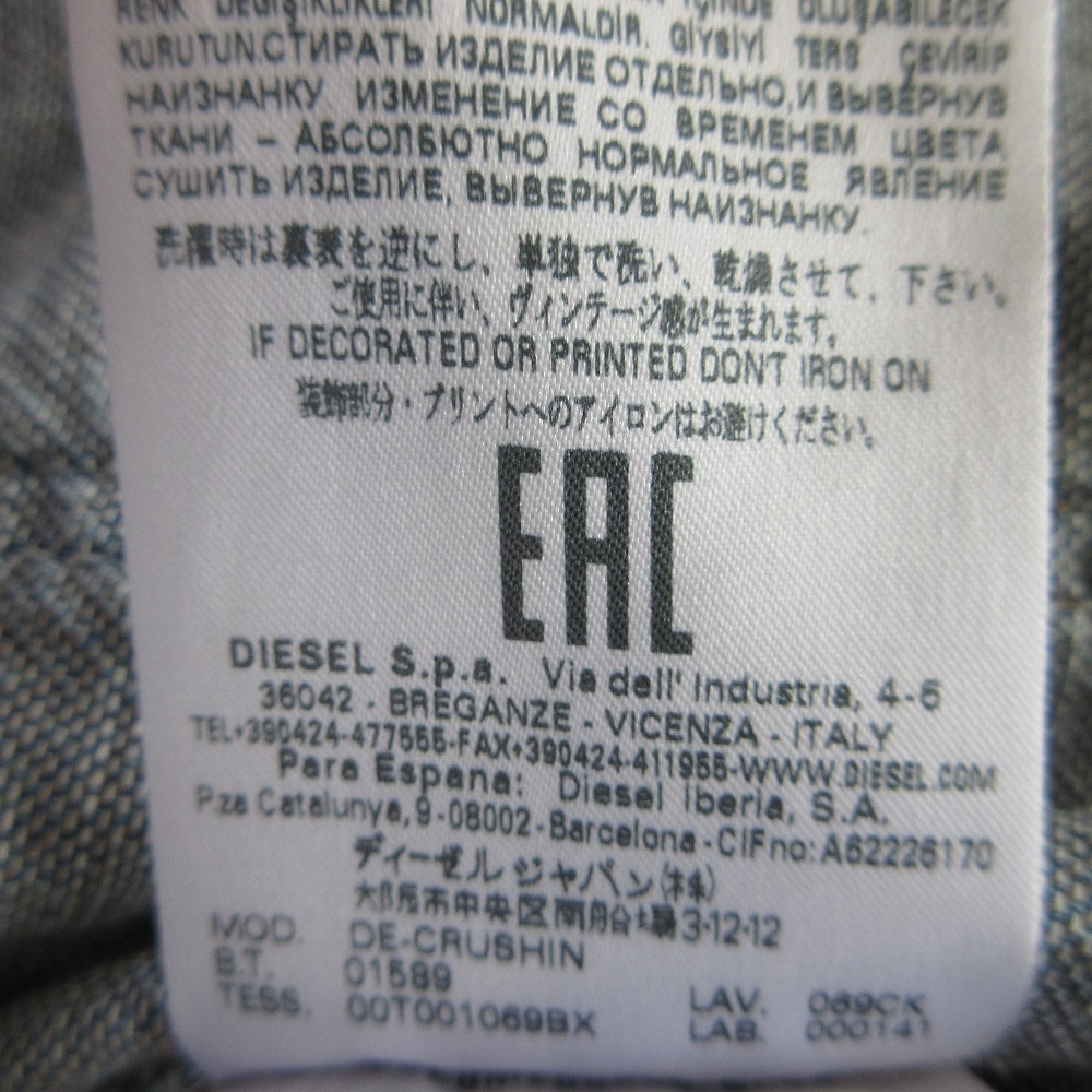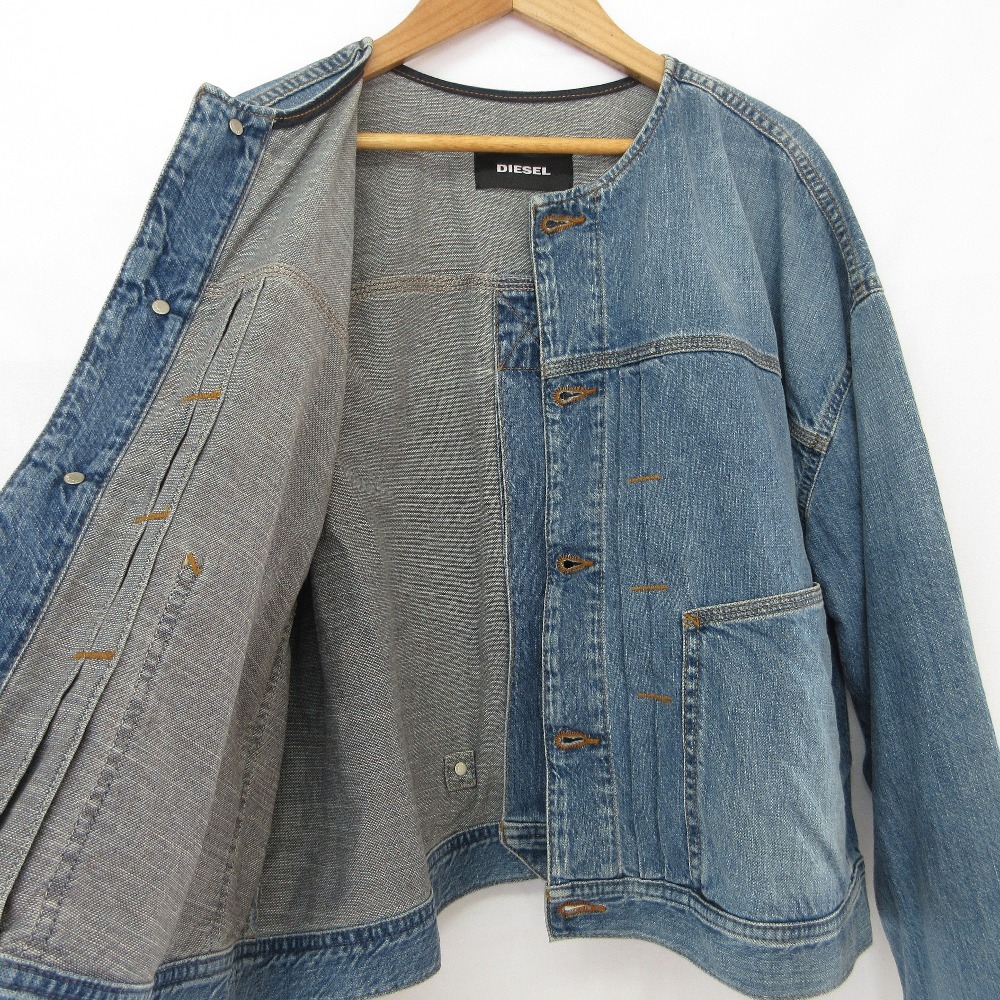 美品 DIESEL ディーゼル DE-CRUSHIN ノーカラー デニム ジャケット ブルゾン Gジャン Sサイズ インディゴブルー