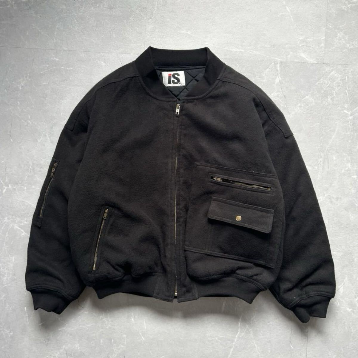 博物館級レベルの80s イッセイミヤケのボンバージャケットになります。ツモリチサトデザインの背面刺繍ロゴ。レーヨン混で上質な質感になります。ブラックでこの状態は市場に一つもないです。まさに一点物。