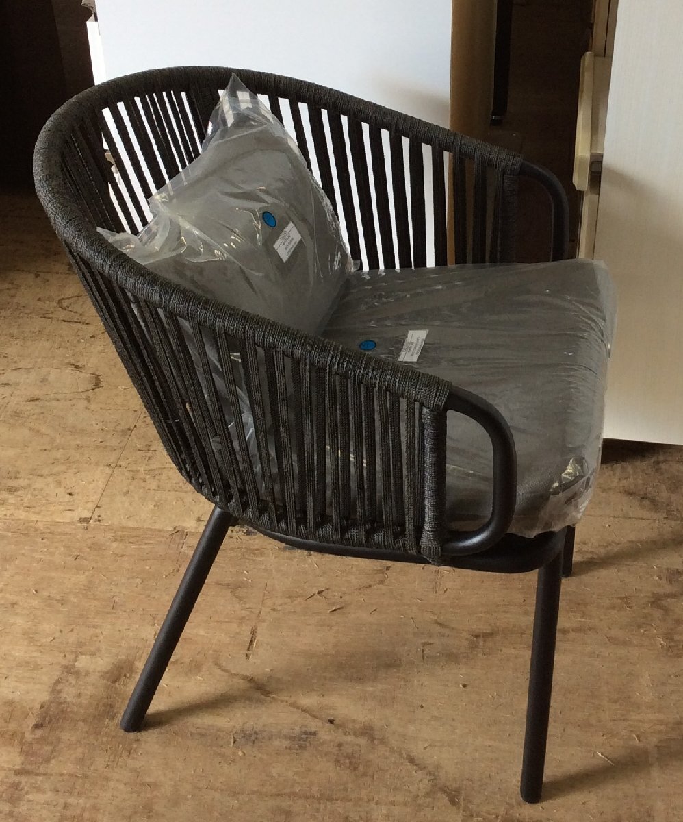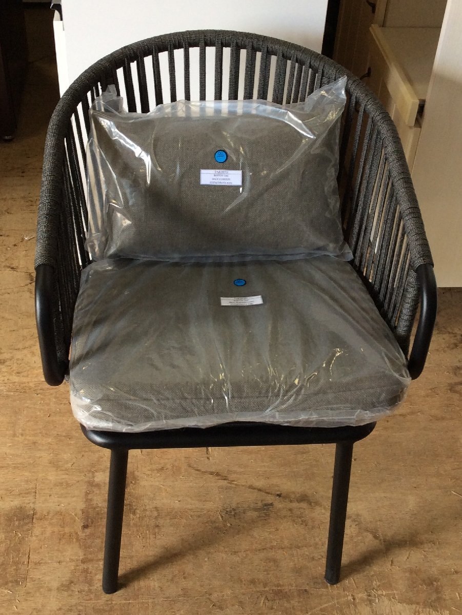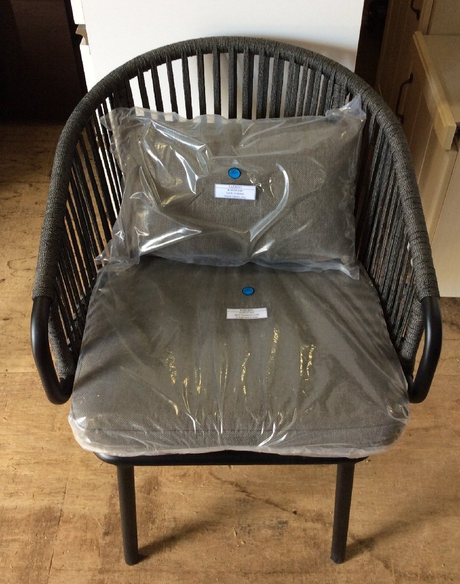 ◇CHERRYの屋外対応可能なチェア入荷いたしました。 ロープ編みのフレームが爽やかで風通しもよく座面の幅は広めなのでゆったりと座れます。室内での利用の他、ガーデンやテラス席、グランピング等の屋外施設でもご利用頂けます。クッションは撥水性のある布張り。ナチュラルテイストで使いやすいグレー色です。 ※長時間雨ざらしにするとクッション内に入った水分が乾きにくくなります。 <商品について> ■メーカー:桜屋工業(CHERRY) ■シリーズ:スティングル ■主材:アルミφ、粉体塗装(ブラック)、ポリプロピレン繊維ロープ編み ■座底面:メッシュ構造 ■張地:撥水性布 ■サイズ:W550×D630×H760(SH450)mm ■重量:約5㎏ ■仕様:屋外対応 ※元箱なし <コンディション> こちらの商品は、新品・未使用品となります。新品商品ですが、店内展示品のため、細かい傷がある場合があります。お勧めの商品です。 |