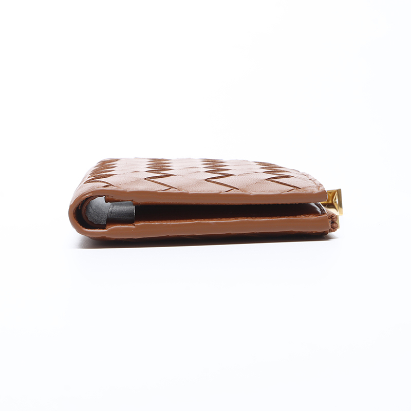 極美品 BOTTEGAVENETA イントレチャート 小銭入れあり 二つ折り財布 ブラウン