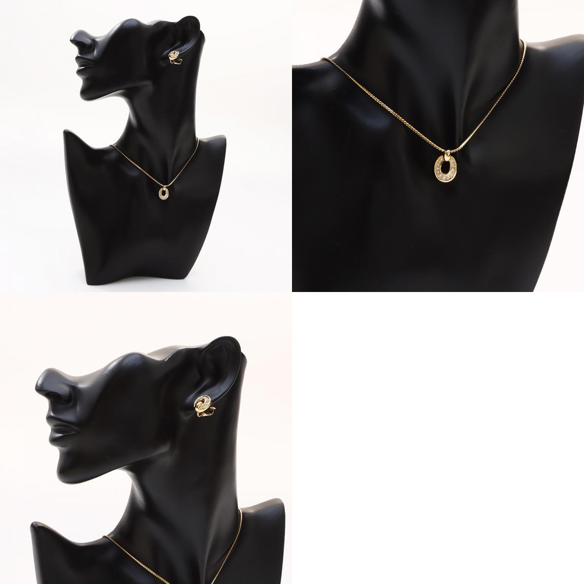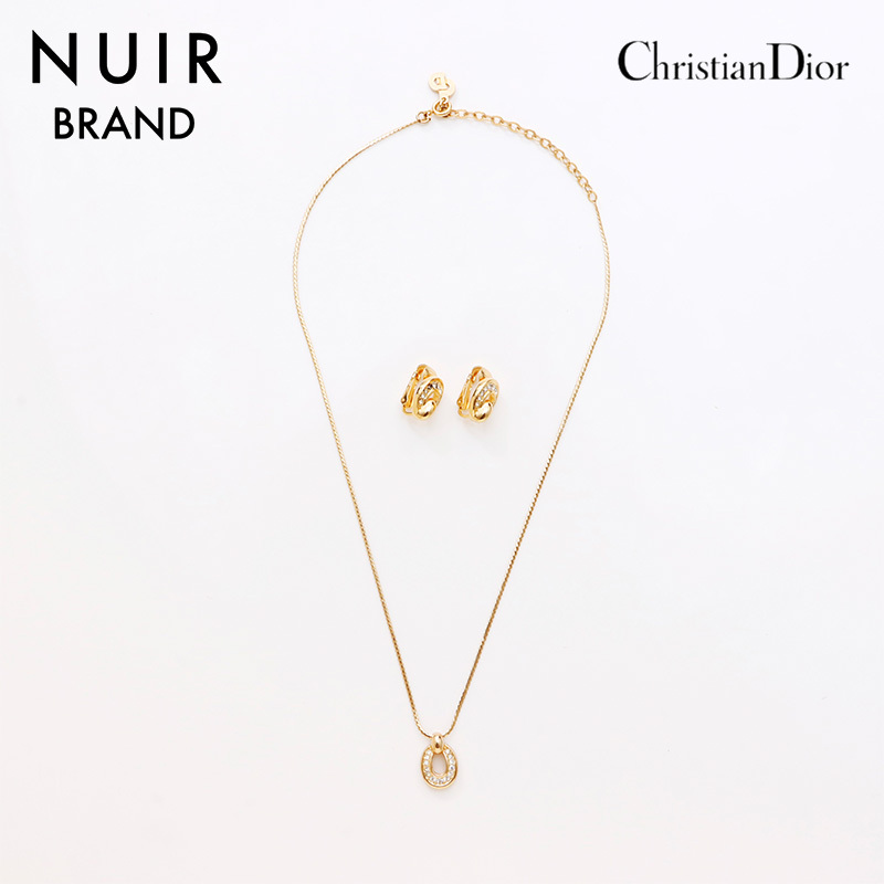 極美品 クリスチャンディオール Christian Dior ヴィンテージ ラインストーン ネックレス セット イヤリング ゴールド WS9444