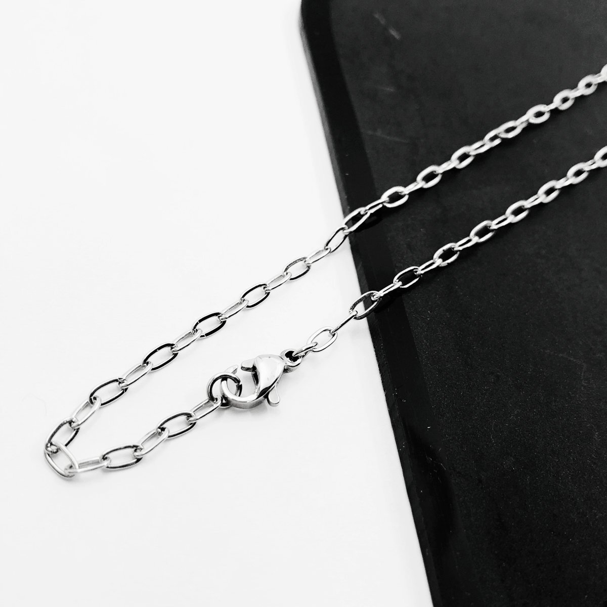 2.5mm幅 90cm 短め ステンレスロング小豆チェーン フラットアズキ アズキネックレス