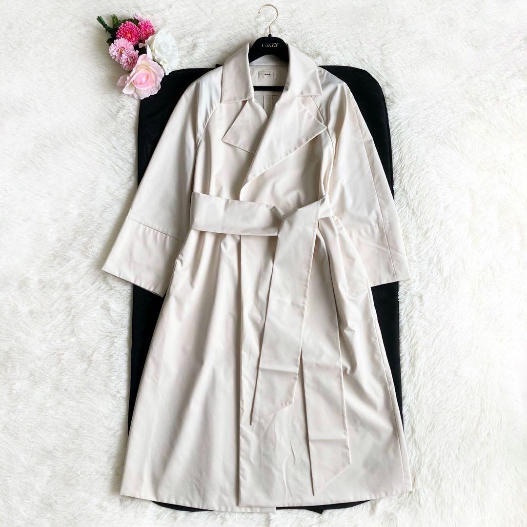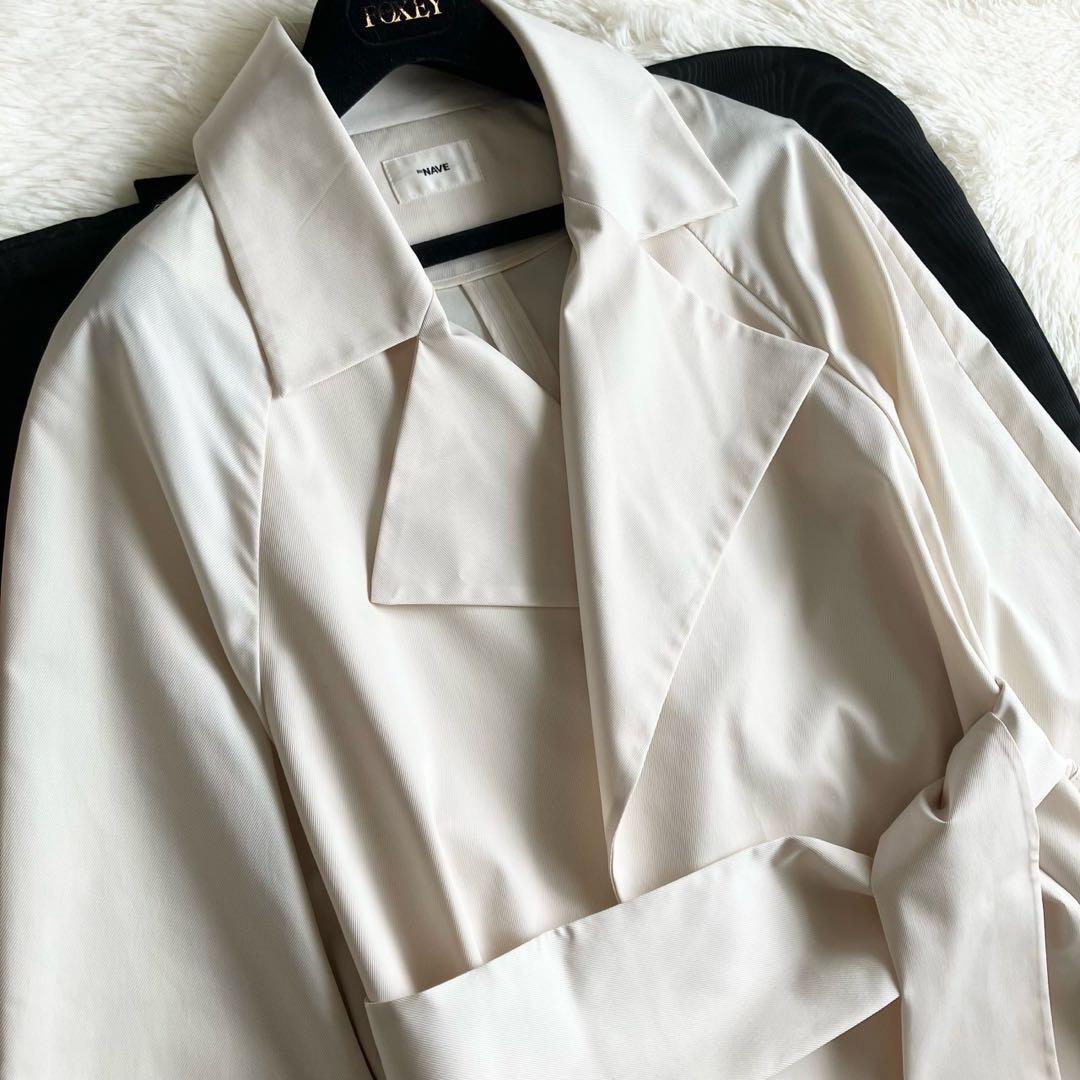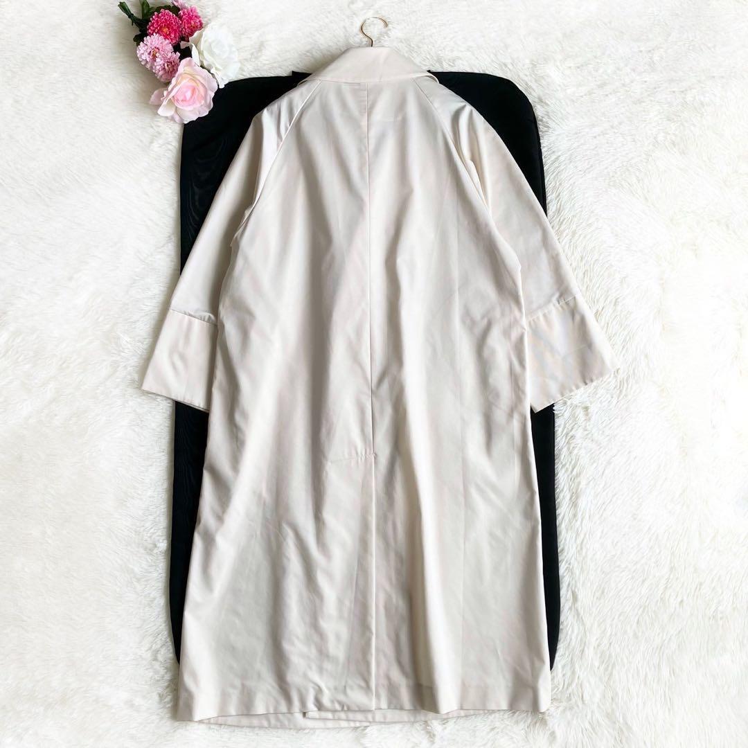 ストンと落ちるシルエットが大人な雰囲気を演出する反発感がありしなやかな素材のトレンチコート。