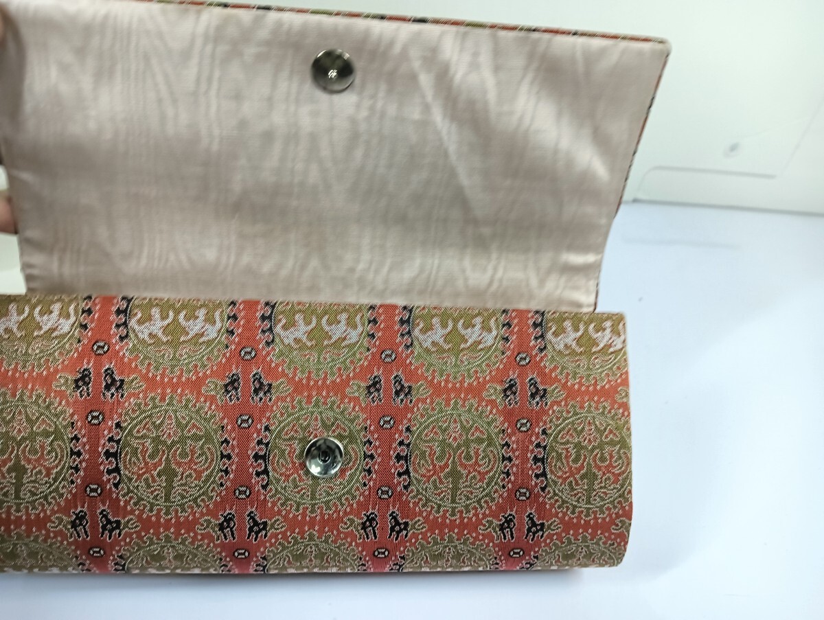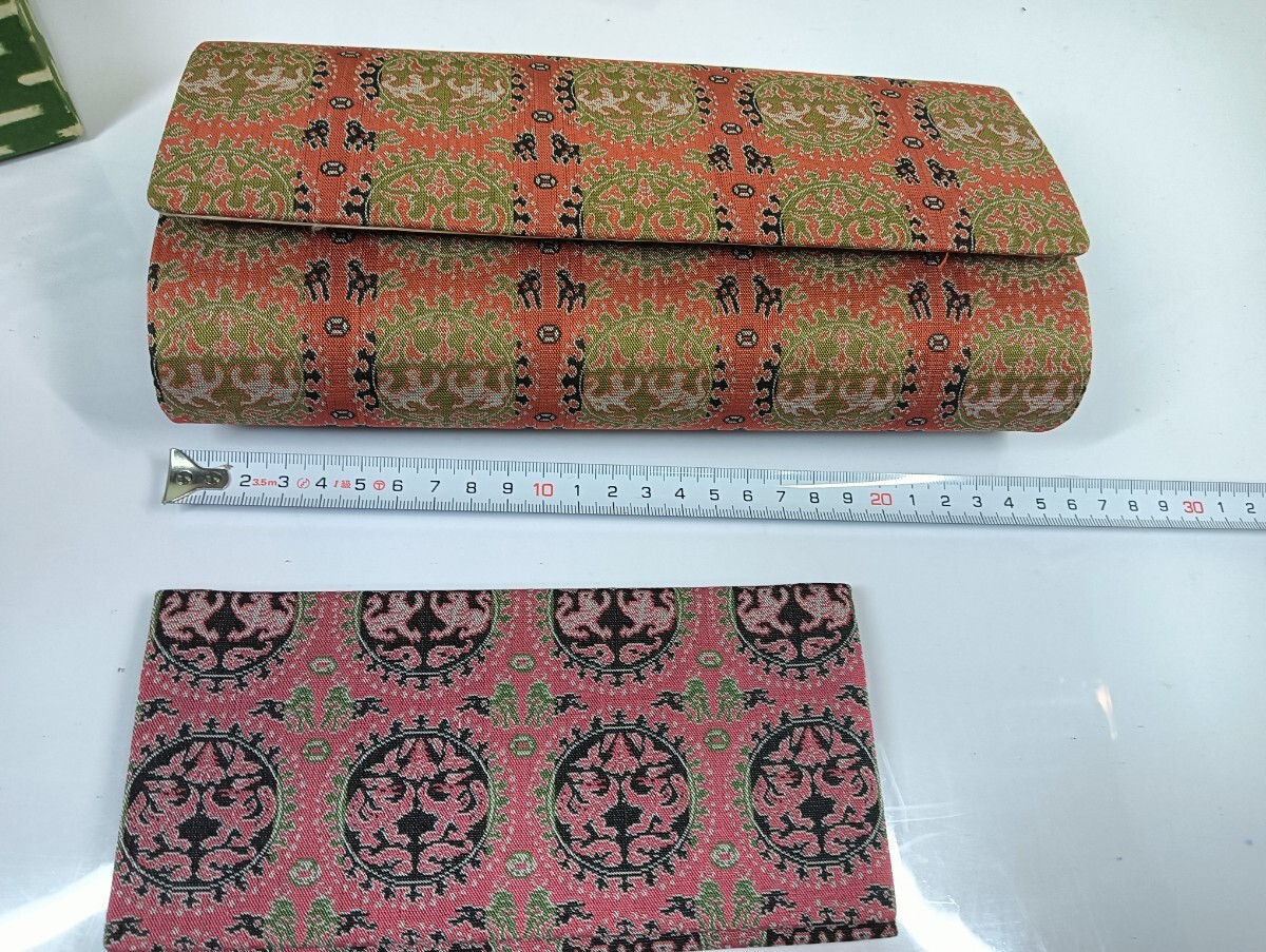 まるで芸術品のような美しい織物で仕立てられた、クラッチバッグと小物入れのセットをご紹介します。