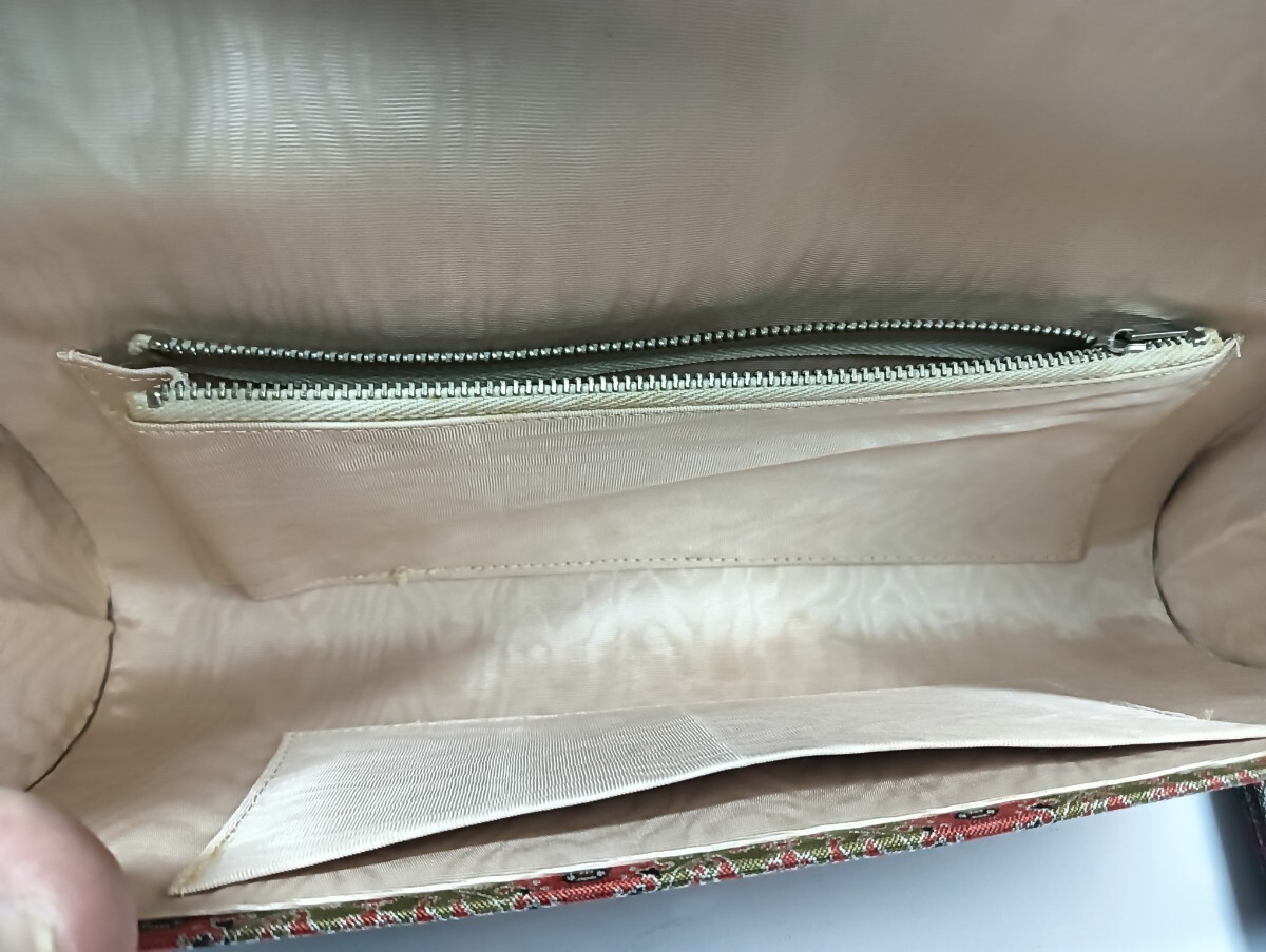 クラッチバッグをそっと開けば、上品な光沢を放つ内生地が現れます。