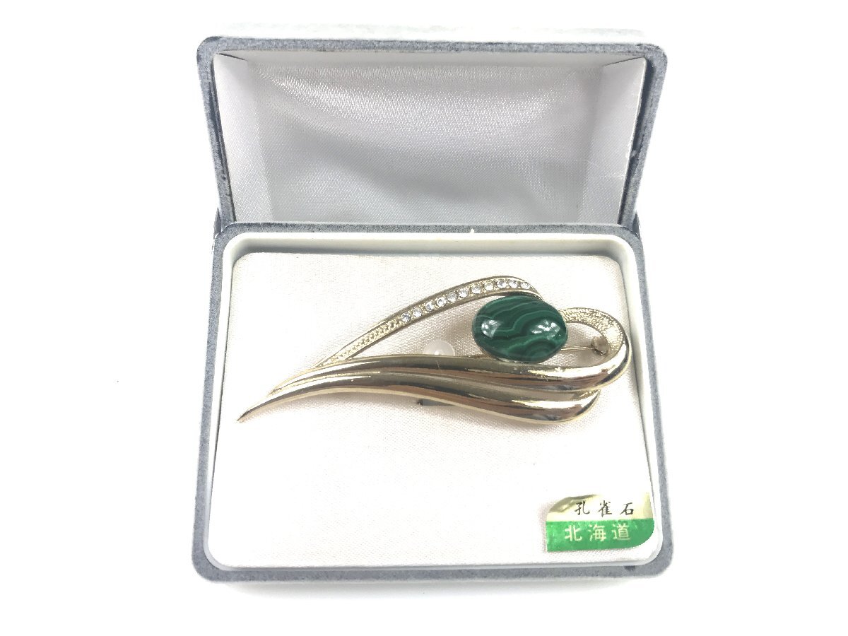 商品名 | 孔雀石 マラカイト 北海道産 ラインストーン ブローチ |