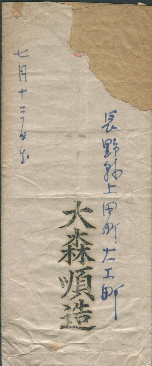 〇長野 貝留 上田 45.7.13→東京・世田谷 45.7.14 菊 10銭
