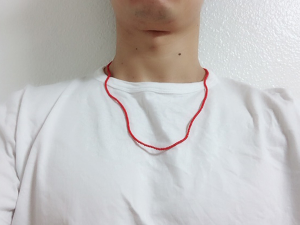 長さ約50cm前後、ビーズの粒は2-3mm前後です