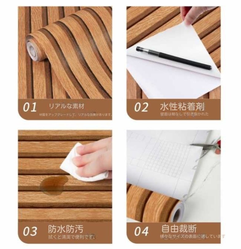ストライプ自己接着木目格子板壁紙リビングテレビ背景壁面装飾ベッド壁囲い防水防湿