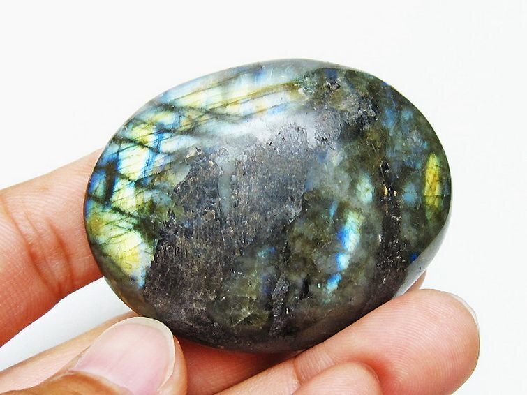 ■商品名: ラブラドライト原石 ■商品ID: T703-4714 ■商品重量:約 81g ■商品サイズ: 高約:57mm 横約:44mm 厚約:22mm 【パワーストーン】 パワーストーンとは、不思議な力が宿るとされている石を指します。明確な定義はありませんが、ダイヤモンドなどの煌めくような宝石をはじめ、岩塩などの身近な鉱物など種類は様々。 身に付けていると災いを遠ざけたり幸運を運んでくれるとされ、古来からお守りとして人々に愛されていました。 パワーストーンの歴史は古く、古代エジプトではミイラと一緒にラピスラズリやタイガーアイ、カーネリアンなどの天然石で作られた装飾品が納められていました。また、世界中の様々な場所で病気の治療や呪術に使われたことから、時代や場所を問わず神秘性は変わらなかったことが分かりますね。 そして現在も、パワーストーンは気の乱れを浄化したりストレスを和らげてくれたり、更には人間関係を円滑にしたりする効果が期待され、美しい輝きとともに多くの人々を魅了しています。 天然石であるパワーストーンの見た目は一つ一つ違いますが、深く考えずに直感で選んだものが一番自分に合っているといわれています。しかし「これがどんな石なのかよく分からない」という場合は、石に込められている意味を調べたりして何が自分に向いているか探すのもいいかもしれません。お守りやお洒落なアクセサリーとして、ぜひ取り入れてみたいですね。 |