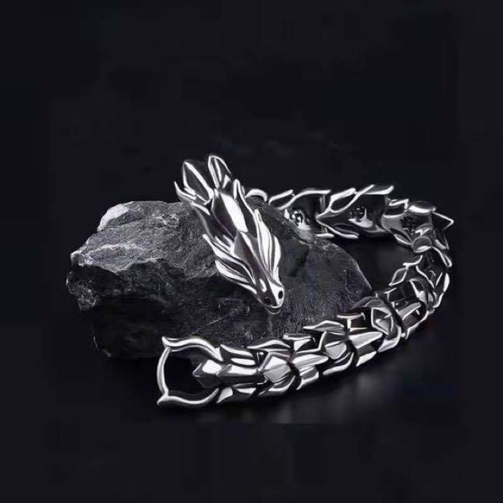 ドラゴンブレスレット 登り龍 竜 太め シルバー