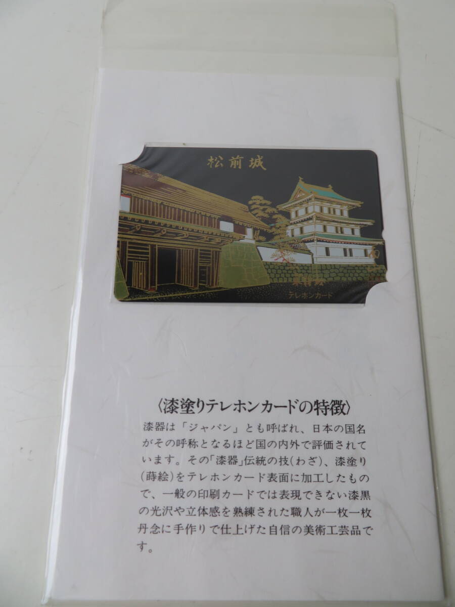 ◆【未使用・保管品】テレホンカード 50度 漆塗り 松前城 函館 本蒔絵テレホンカード 橋本漆芸 テレカ