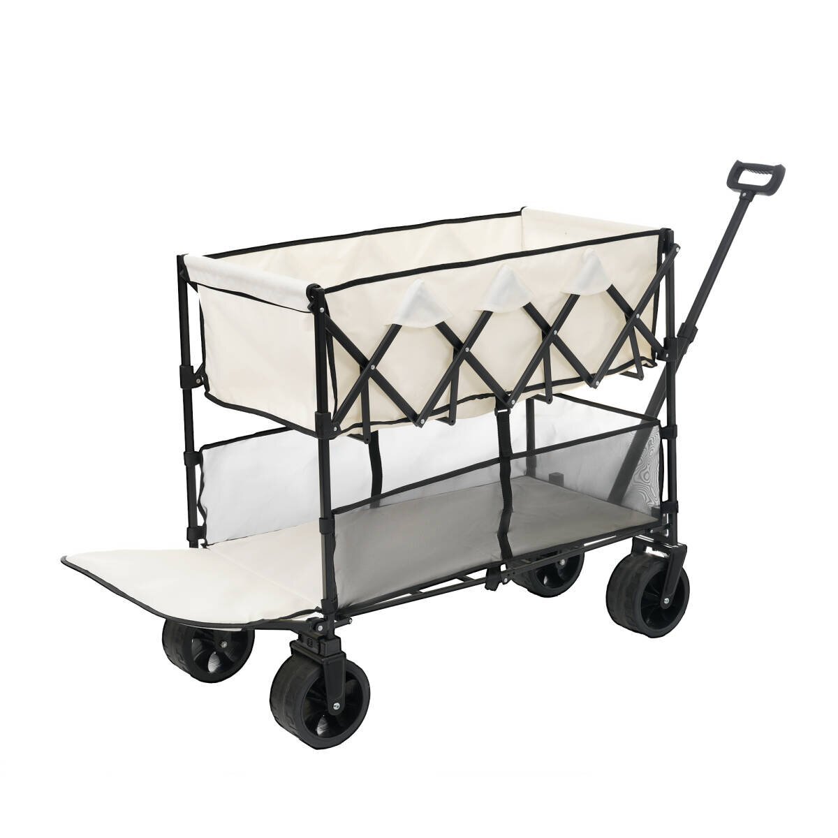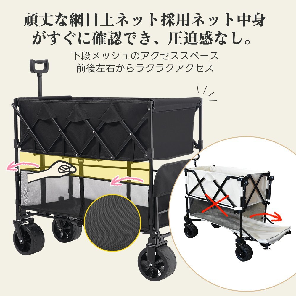 ダブルシェルフ上下2段 キャリーワゴン アウトドアワゴン 290L 後ろ開け 自立式 折りたたみ コンパクト【ホワイト】