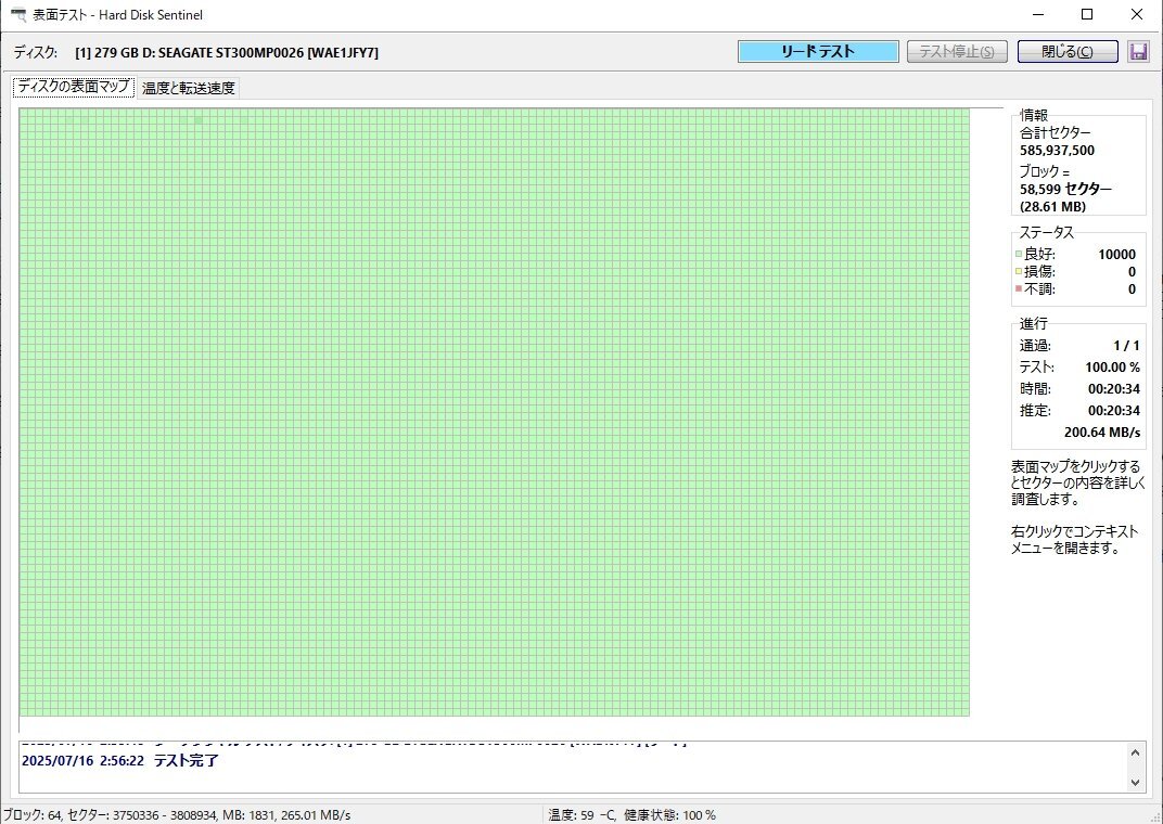 実施しています(不良セクタ無し)