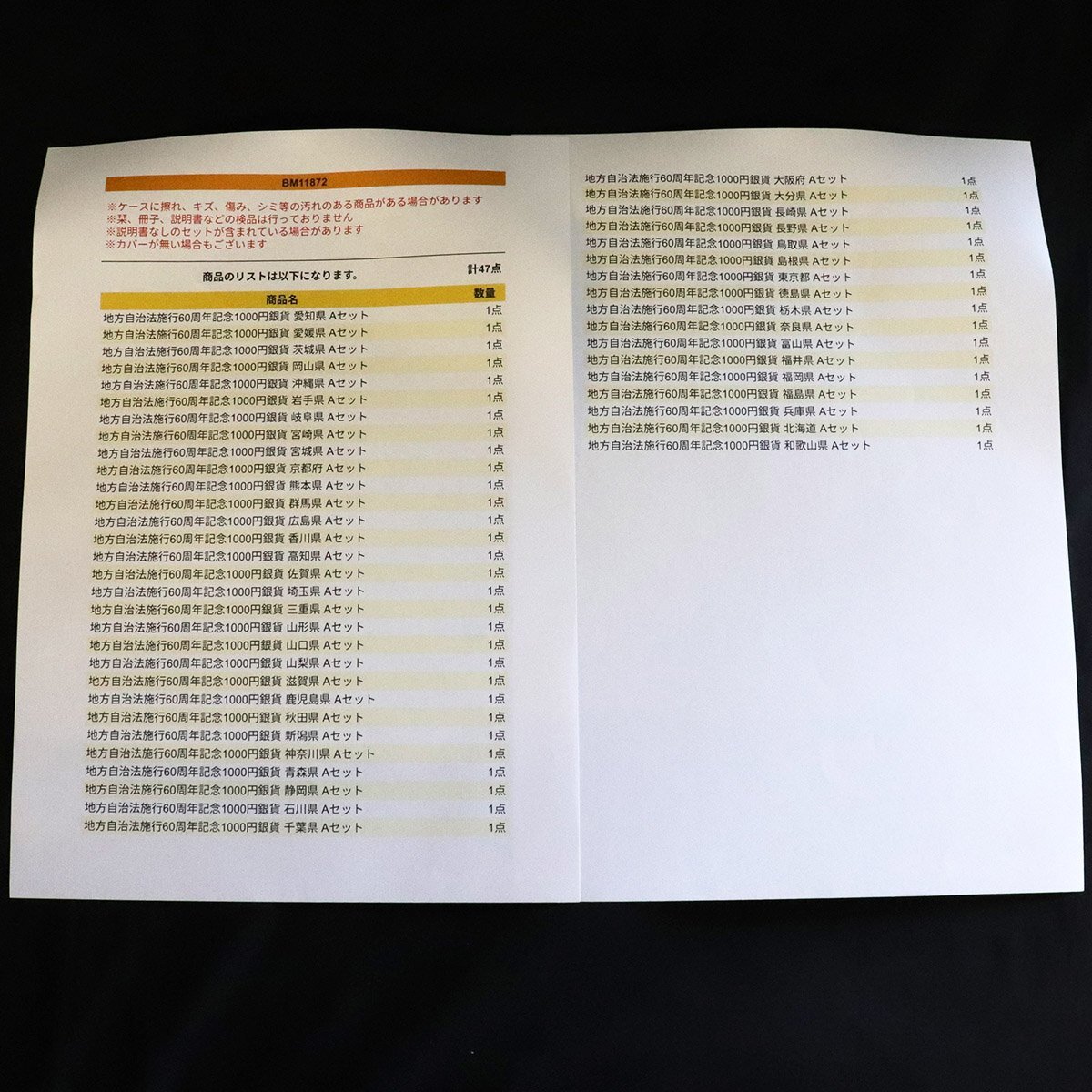 【コンプリートセット】地方自治法施行60周年記念千円銀貨幣プルーフ貨幣セット Aセット 47都道府県◆おたからや【M-BM11872】