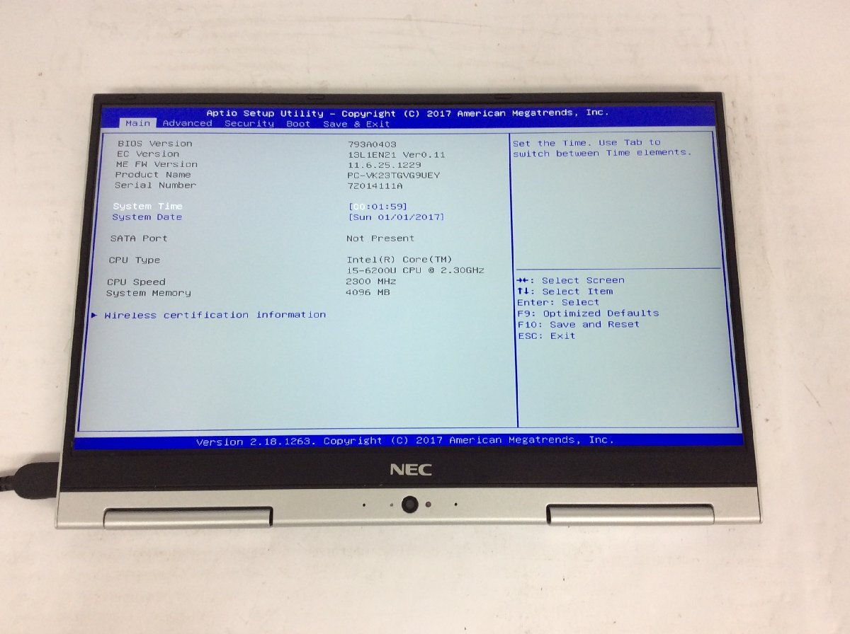 ジャンク/ NEC PC-VK23TGVG9UEY Intel Core i5-6200U メモリ4.1GB ストレージ無し 【K22349】