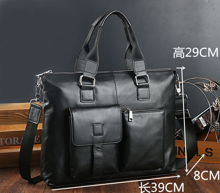 送料コミコミ☆ メンズ 本革 ビジネスバック ブラック 牛革 ブリーフケース 書類カバン 鞄 オフィス 通勤【n215】