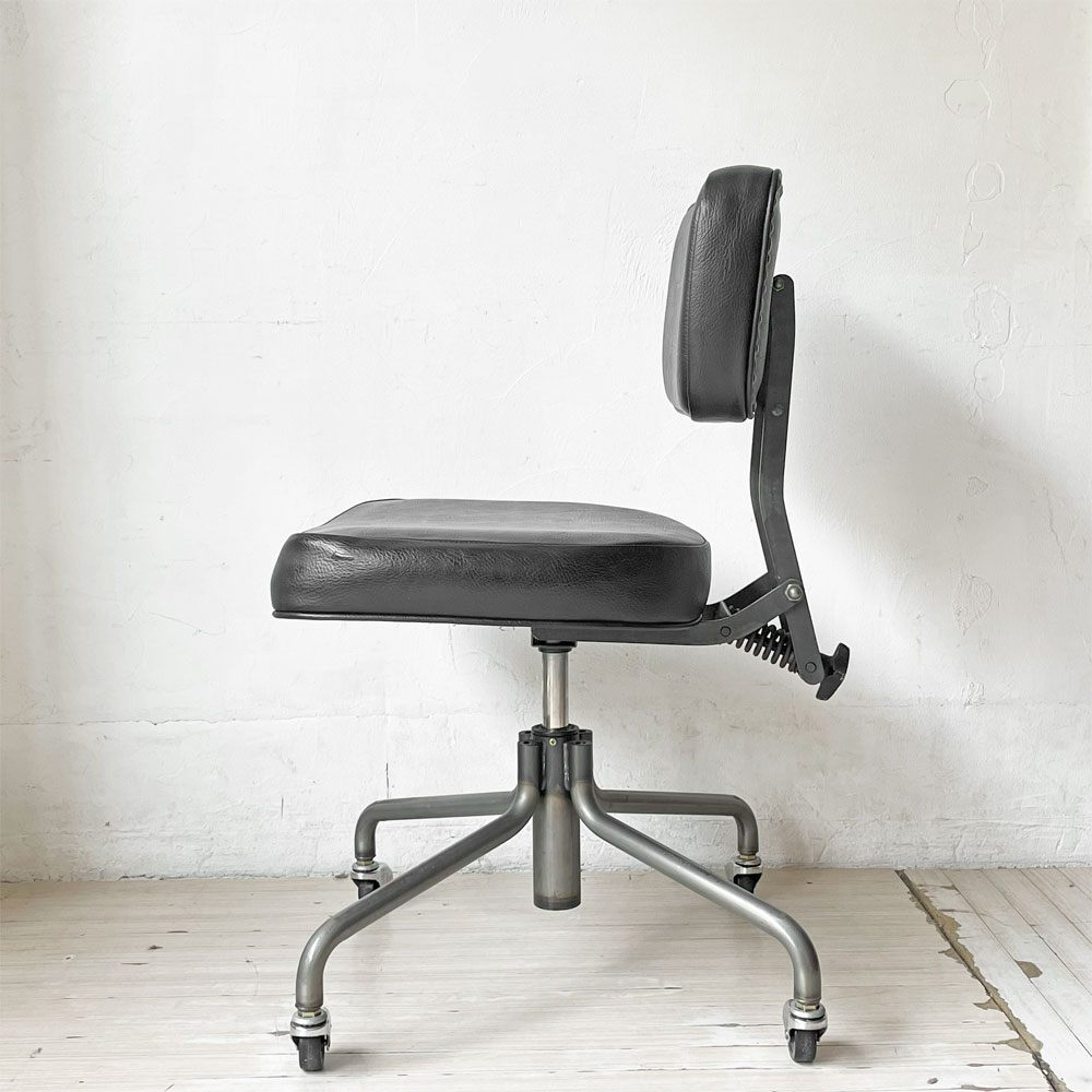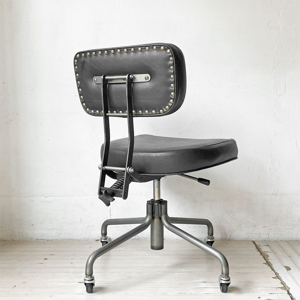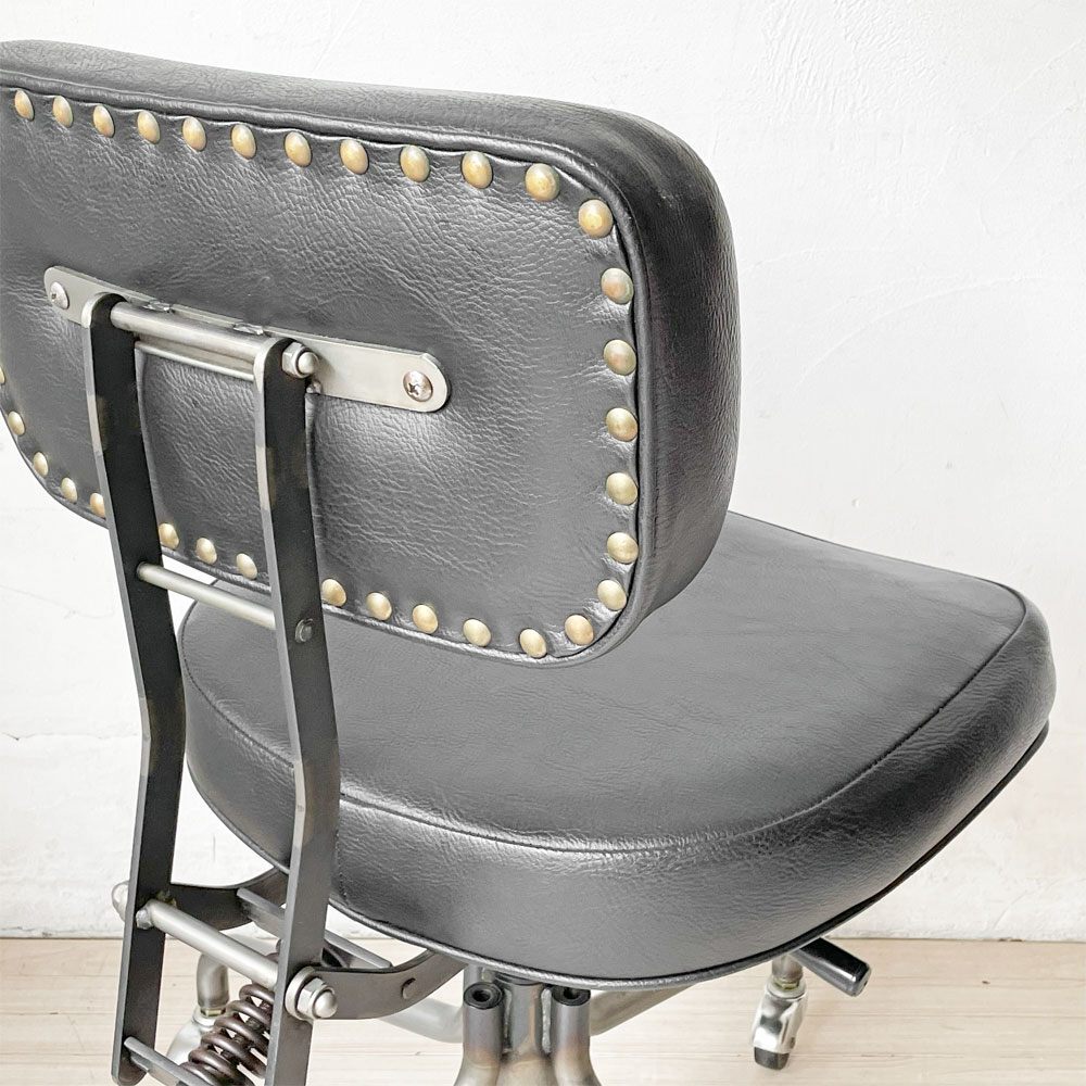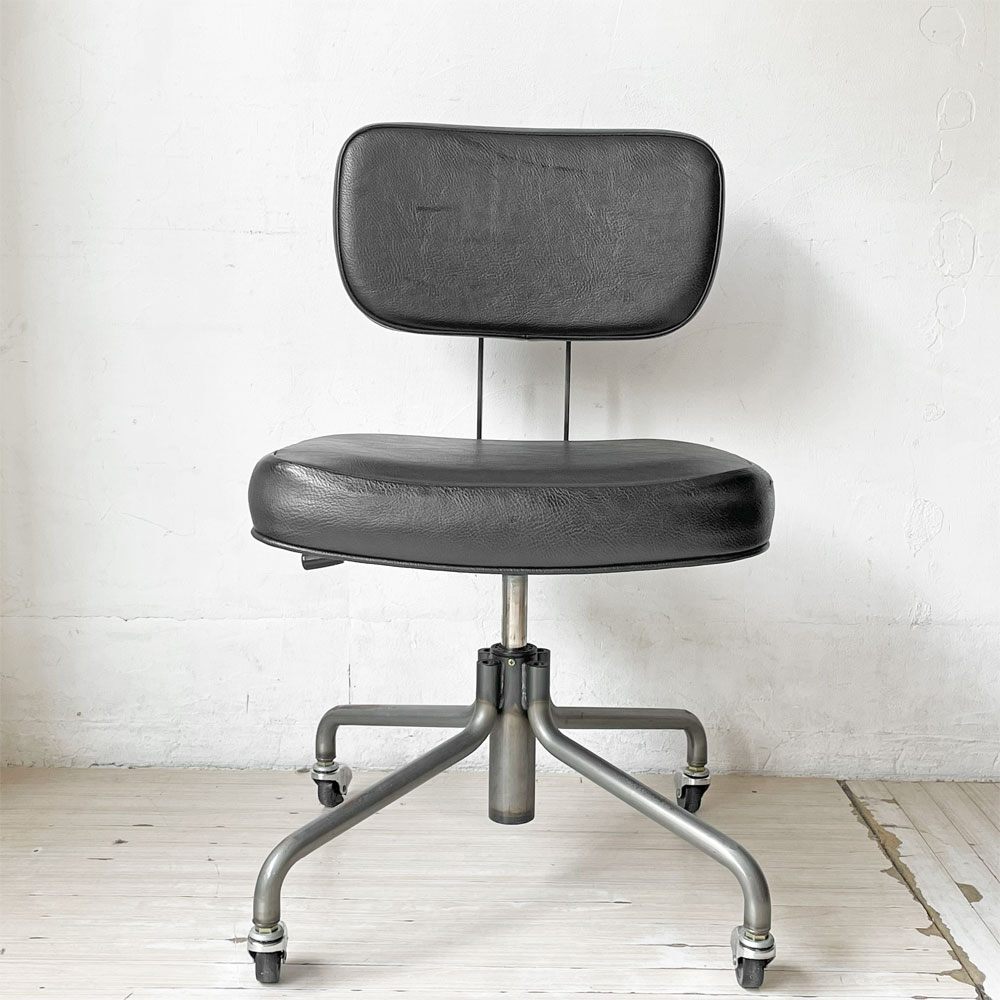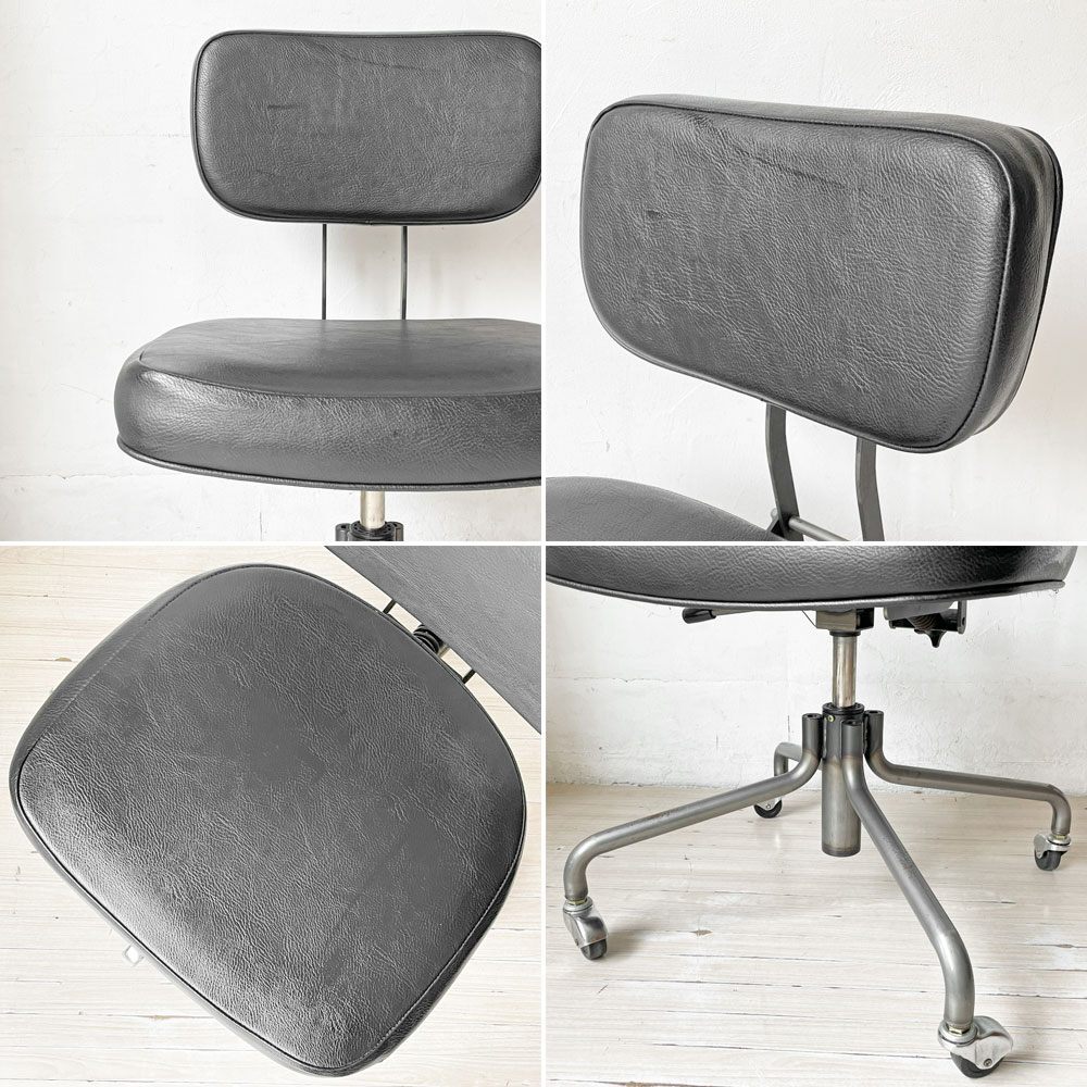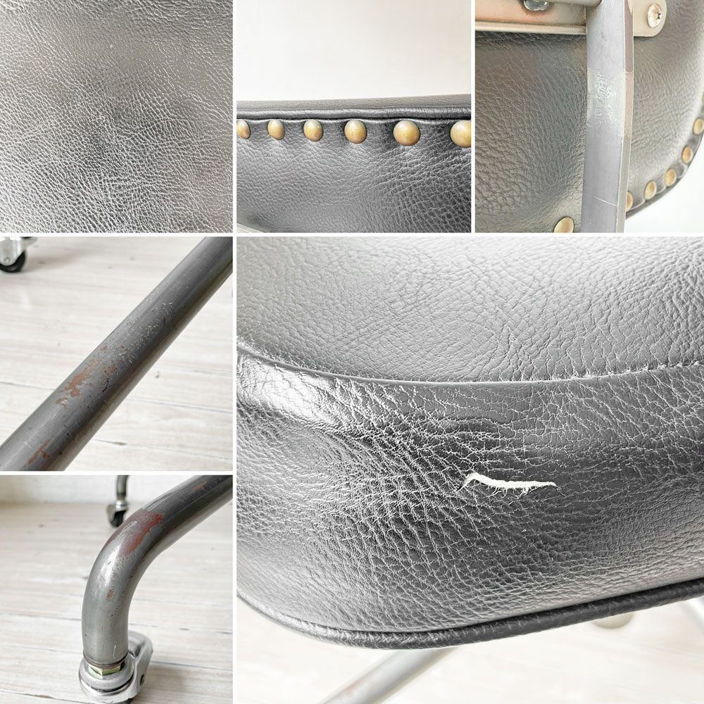 コンディション | 使用に伴い、レザーに僅かな擦れ、色ムラや皺の寄り、フレームのクスミや脚部の多少のサビなどがございます。また、座面のレザー硬質化、前面に2.5cmほどの破れがございます。その他、スチールや鋳鉄にはくすみやサビ、塗装の剥がれなどが確認できますが、いずれもインダストリアルの風合いとしてお楽しみくださいませ。昇降機能にも不具合はなく、これからもまだまだ実用頂けるコンディションを保っております。 ※特筆すべきコンディションは出来るだけ記載させて頂きますが、細かい擦れや傷、汚れ等を完全にお伝えする事は出来ません。画像をご確認の上、ご入札をご検討下さいませ。 ※取扱説明書や保証書等は記載が無い限り付属いたしません。 |