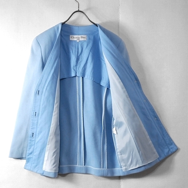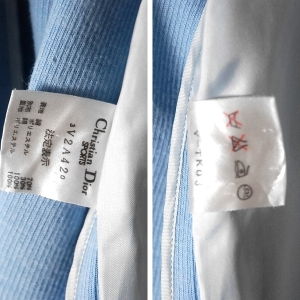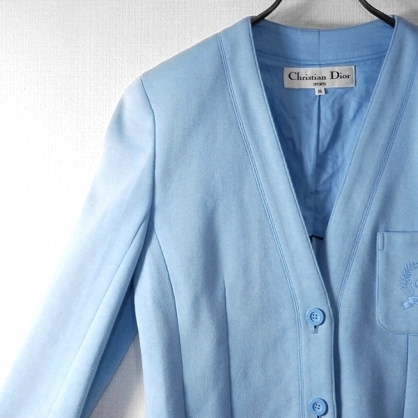 Christian Dior “SPORTS”ラインのノーカラージャケット。 淡いサックスブルー、胸ポケットにCDロゴ刺繍入りで通勤やオケージョンに上品に羽織れます。 顔周りがすっきり見えるVネックのノーカラー。前立ては同色ボタンで上品にまとまります。 胸ポケットには月桂樹で囲んだ「CD SPORTS」の刺繍が入り、さりげなくブランド感を添えます。 やわらかいカットソー調の表地に総裏仕立てで、長い季節に着回せます。 きれいめパンツやワンピースはもちろん、デニム合わせでヴィンテージMIXにも好相性です。 カラー: サックスブルー(水色) サイズ: M( 身幅50cm 着丈67cm肩幅42cm袖丈60cm) 素材: 表地 綿70% ポリエステル30%/裏地 ポリエステル100% ◎注意事項 出品商品はあくまでも古着になりますので、 ご理解ある方のみご購入ください。 小さくおりたたみ発送しますので、たたみジワはご了承ください。 ★他にも多数出品中 #ももこの断捨離 20250923-17F T 1. 一口价