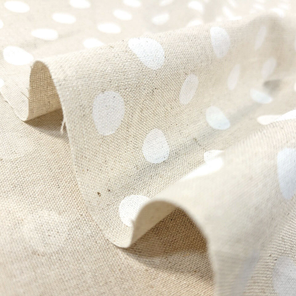 ナチュラル感たっぷりの、ドット模様の綿麻キャンバス生地です。