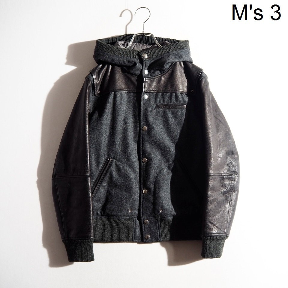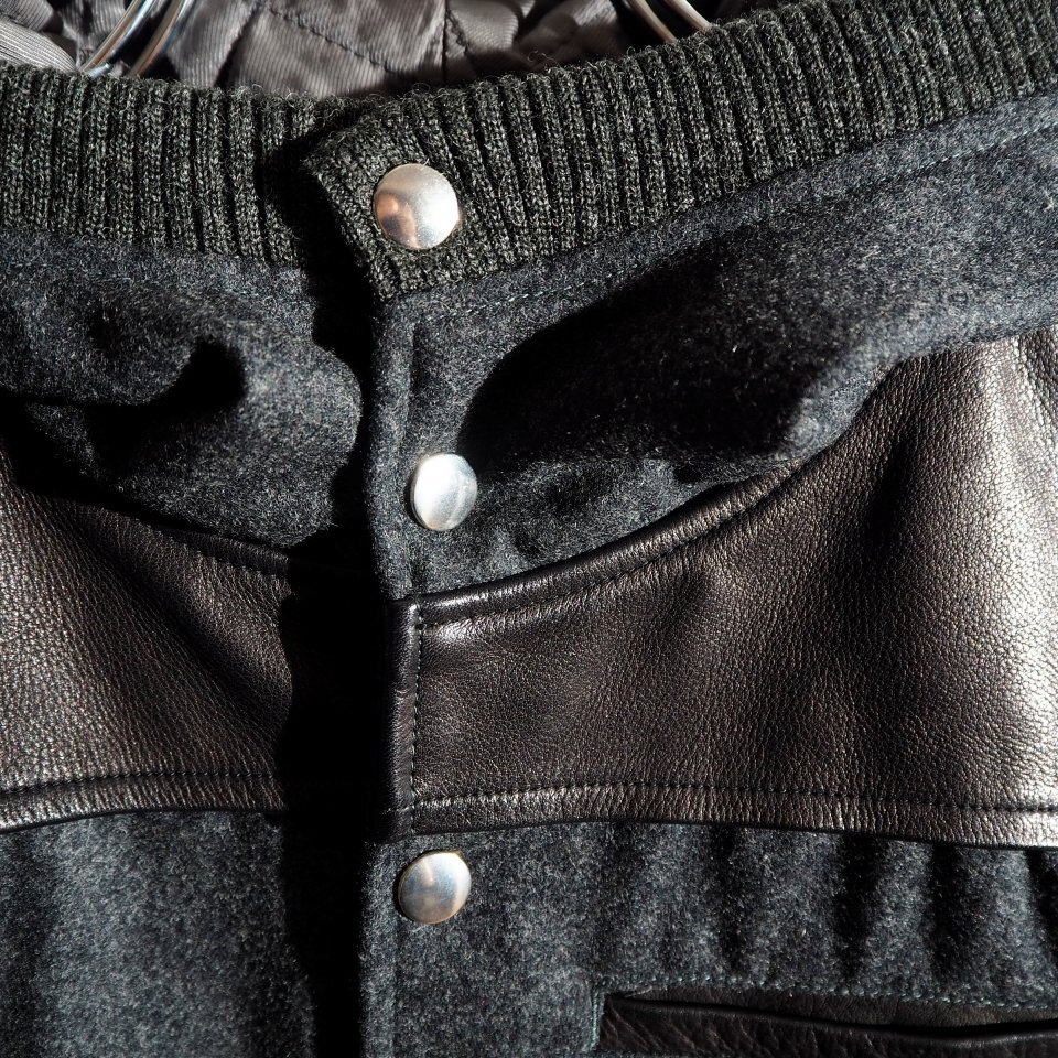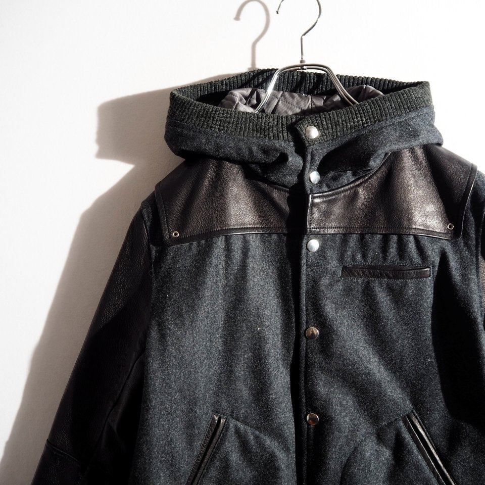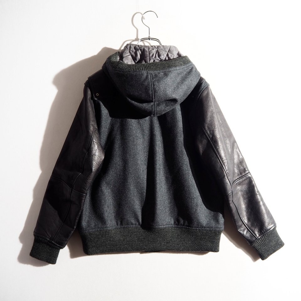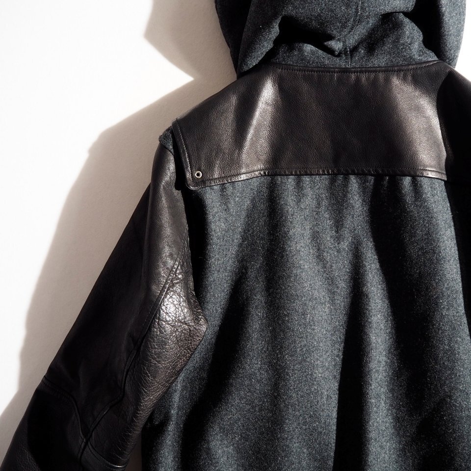 MIRROR期 ウール×レザー フード付き スタジャン グレーブラック 3