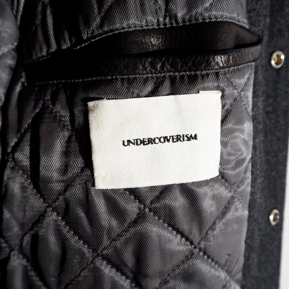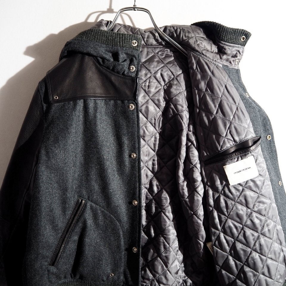 P6465P ▼UNDERCOVER ISM アンダーカバー▼ MIRROR期 ウール × レザー フード付き スタジャン ジャケット グレーブラック 3 秋冬 rb mks