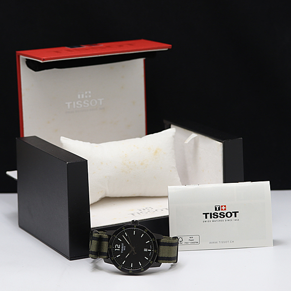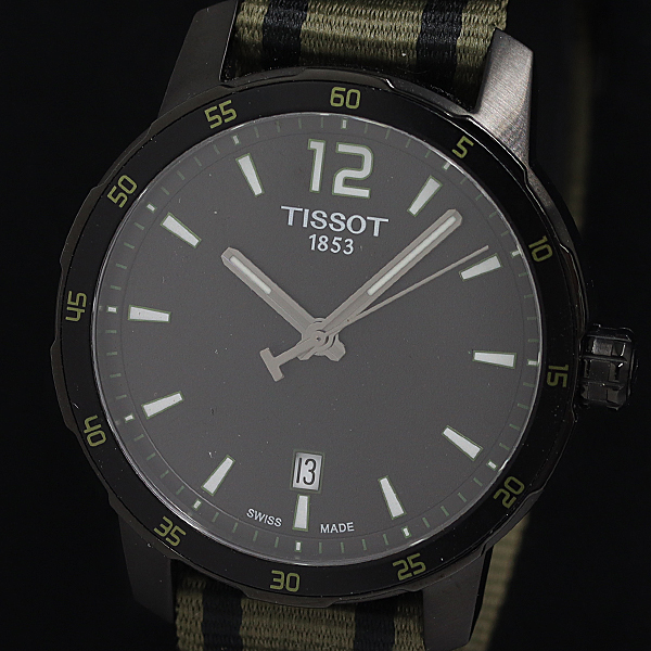 1円 箱付 稼働 美品 ティソ T095410A QZ ブラック文字盤 メンズ腕時計 1927000 10NGB SMZ