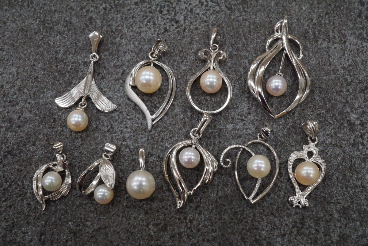 B655 全てアコヤ真珠 本真珠 パール ネックレス ペンダント 10点セット ヴィンテージ アクセサリー 大量 まとめて おまとめ SILVER含む